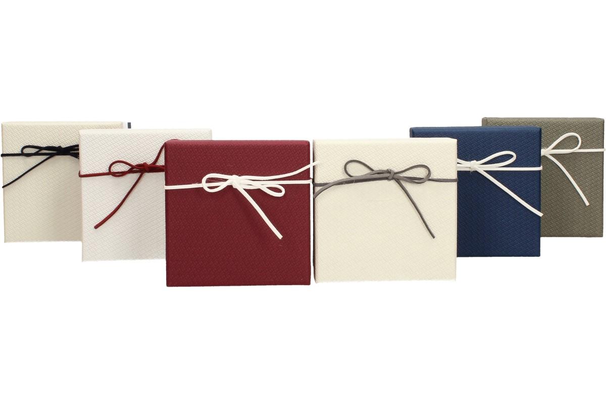 Nevíte jak zabalit daný dárek, aby vypadal hezky nebo vás dárkové tašky omrzely? V tomto případě Vám může pomoci dárková krabička. Krabičky jsou k dostání v rozměrech 11 x 11 x 7 cm a různě barevně nakombinované. Pevná konstrukce, zajímavý povrch a ozdobná mašlička povznese dárek, který se v ní ukrývá. Do krabičky můžete dát šperky, klíče od nového auta, ponožky, dárkový poukaz a vše co vás jen napadne.