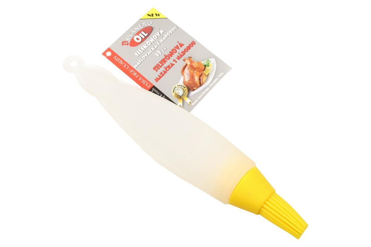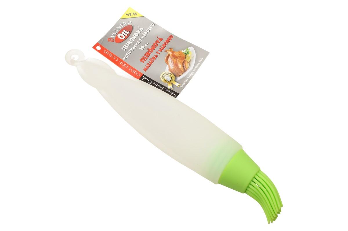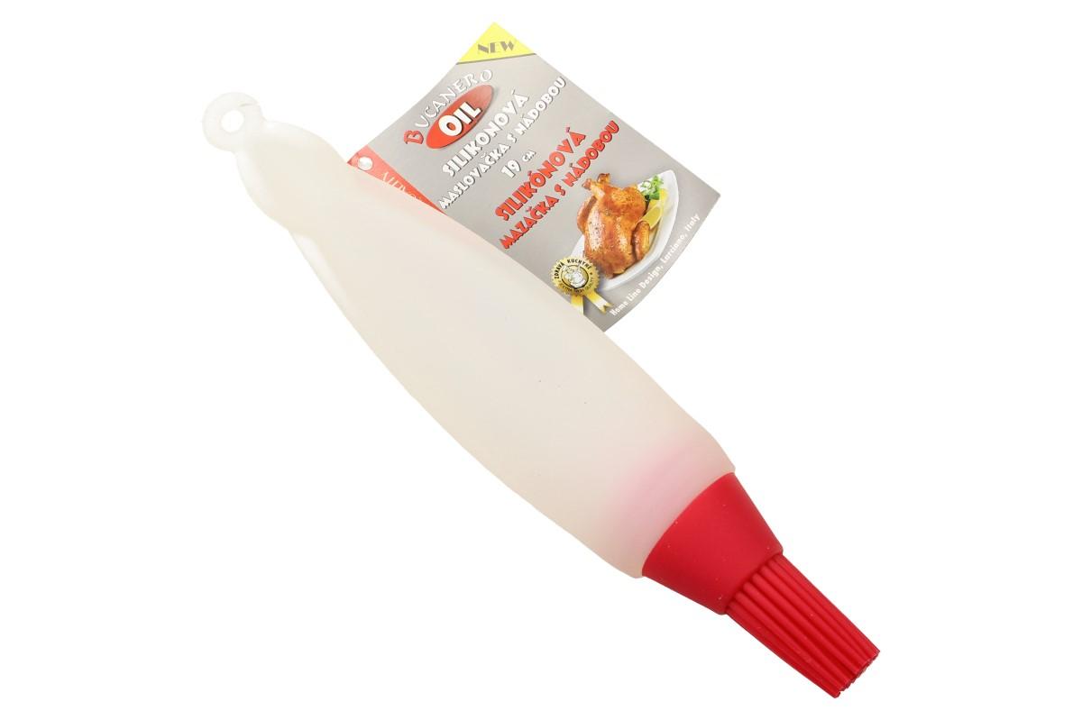 Mašlovačka se zásobníkem je velmi praktická a užitečná věc do každé kuchyně. Je vyrobena z vysoce kvalitního a zdravotně nezávadného silikonu. Po odšroubování mašlovačky nalijte do zásobníku tekutinu, kterou chcete potírat. Při pečení ji využijete např. na čokoládu, polevu, vajíčko,.. Jindy třeba na marinádu, máslo, olej atd.