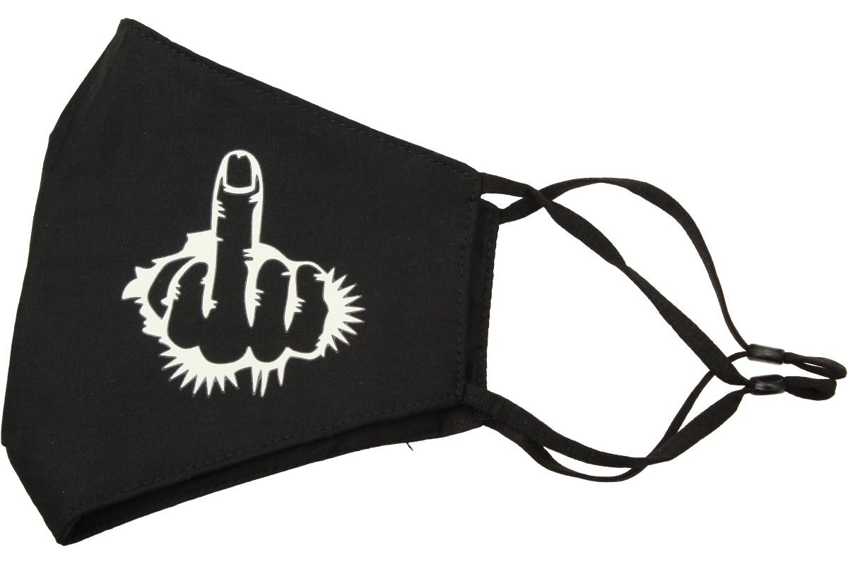 Už vás nebaví jednorázové sterilní roušky, které mají všichni? Dejte to jasně najevo, s touto rouškou s obrázkem prostředního prstu, který svítí ve tmě. Ideálně plní nároky pro jednoduché nasazení při práci, procházce znečištěným prostředím, infekčním prostředí apod.. Když musíme nosit roušku tak ať stojí za to! Splní požadavky nařízení vlády a ještě dobře vypadá. Vysoká prodyšnost umožňuje pohodlné dýchání. Rouška se skládá ze 2 vrstev pevné látky a slabé výplně. Velikost je univerzální, ale lze nastavit délku gumiček pomocí gumového kroužku.