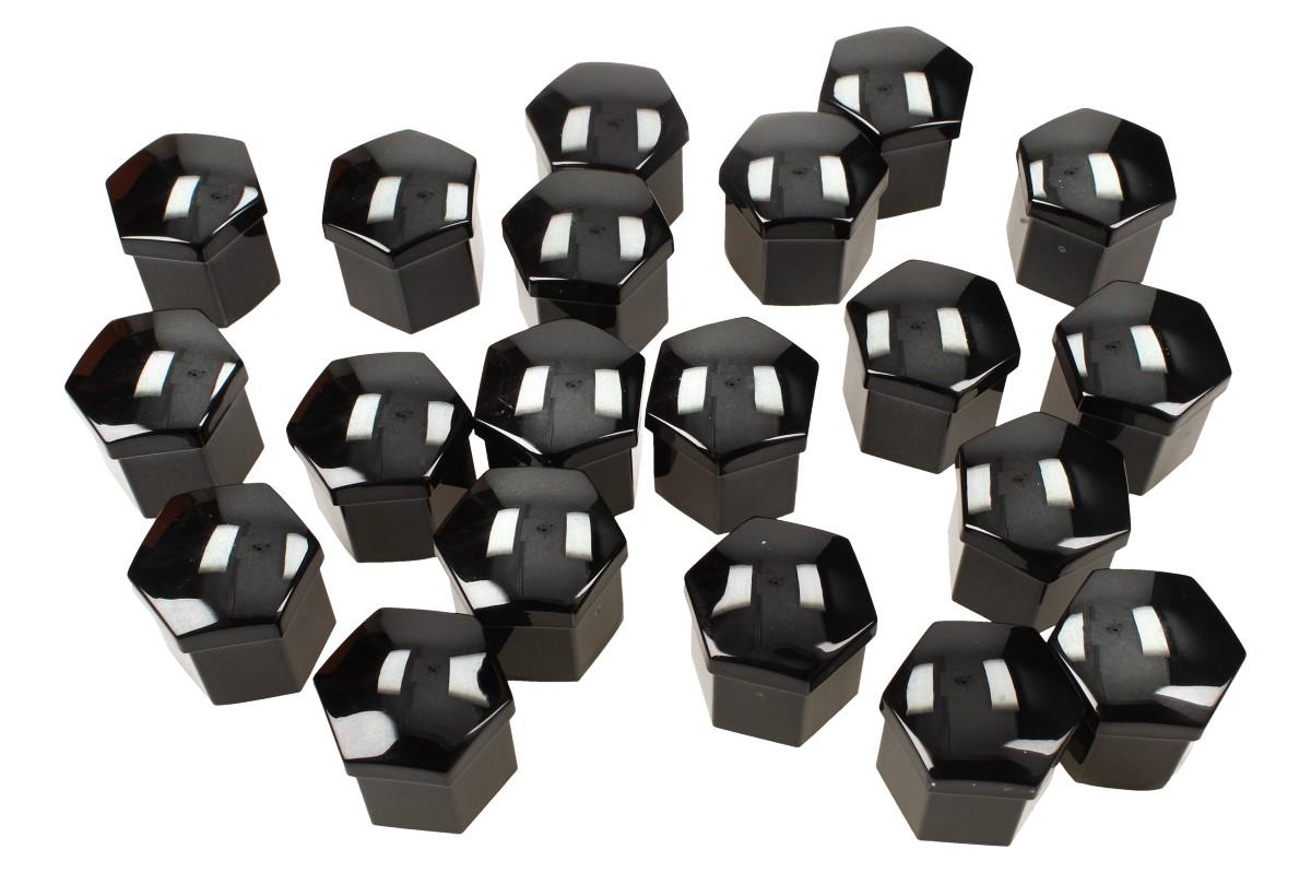 Sada ozdobných krytů pro šrouby kol černé 17 mm 20 ks