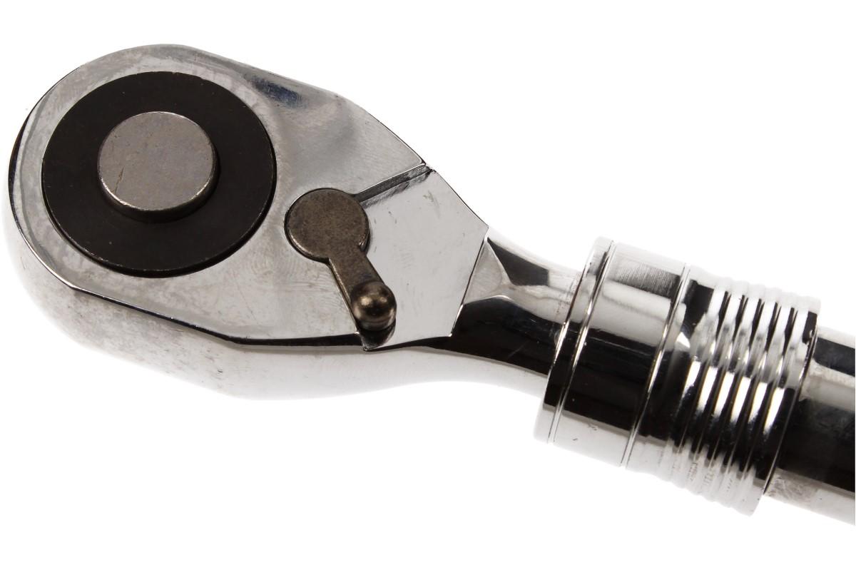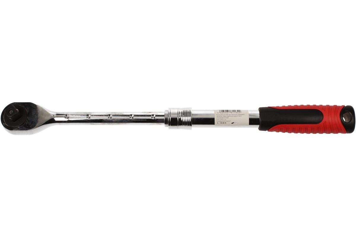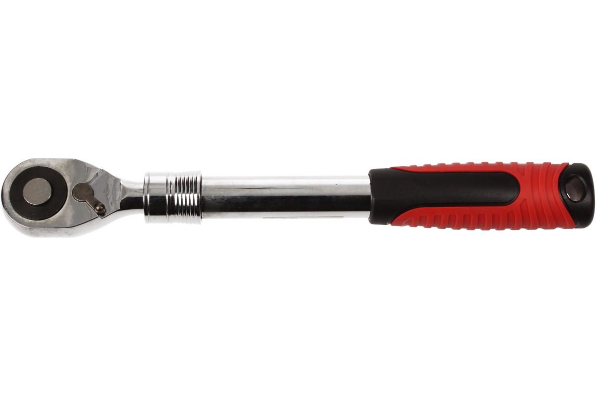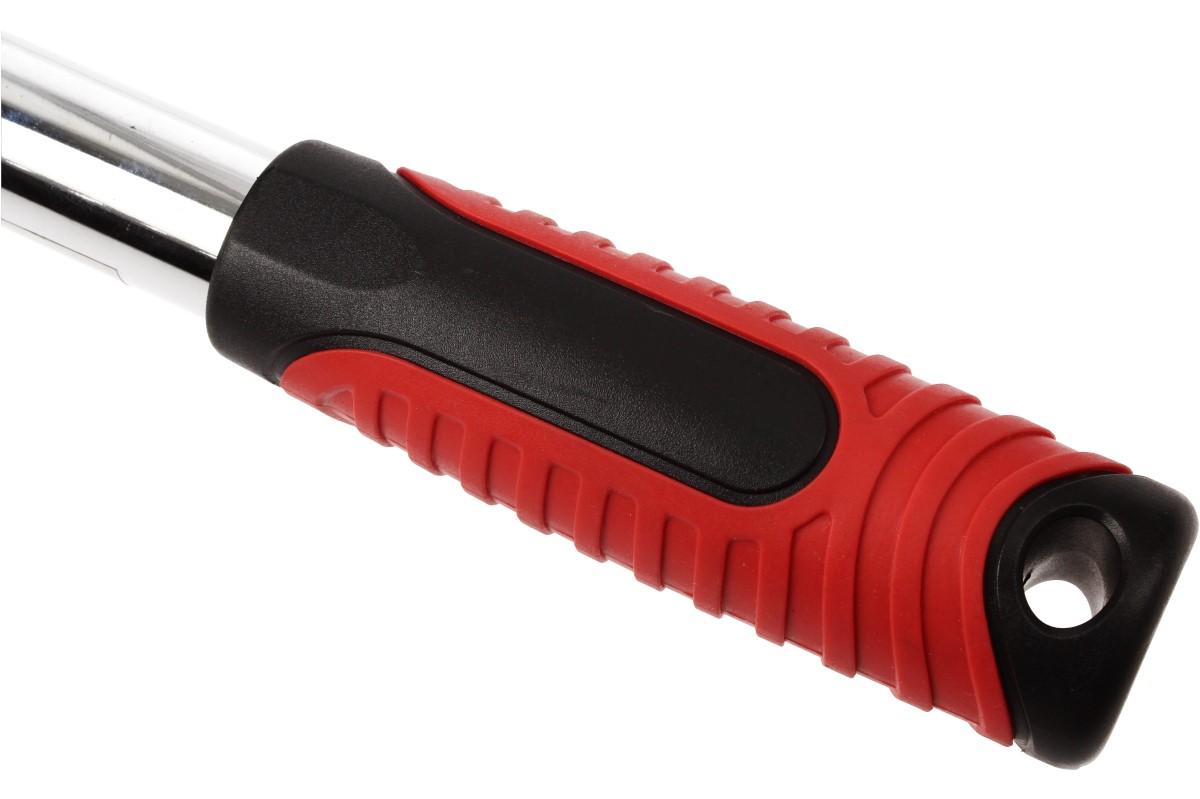 Velká ráčna teleskopická je opatřena přepínací páčkou L/P chodu. Hlavní předností je teleskopické rameno, které lze vysunout až na délku 43 cm. Toto jednoduché vysunutí zajišťuje aretační kroužek, který stačí přitáhnout k sobě. Aby se Vám během práce nestala nějaká nepříjemnost, je opatřena pojistkou proti uvolnění hlavice.