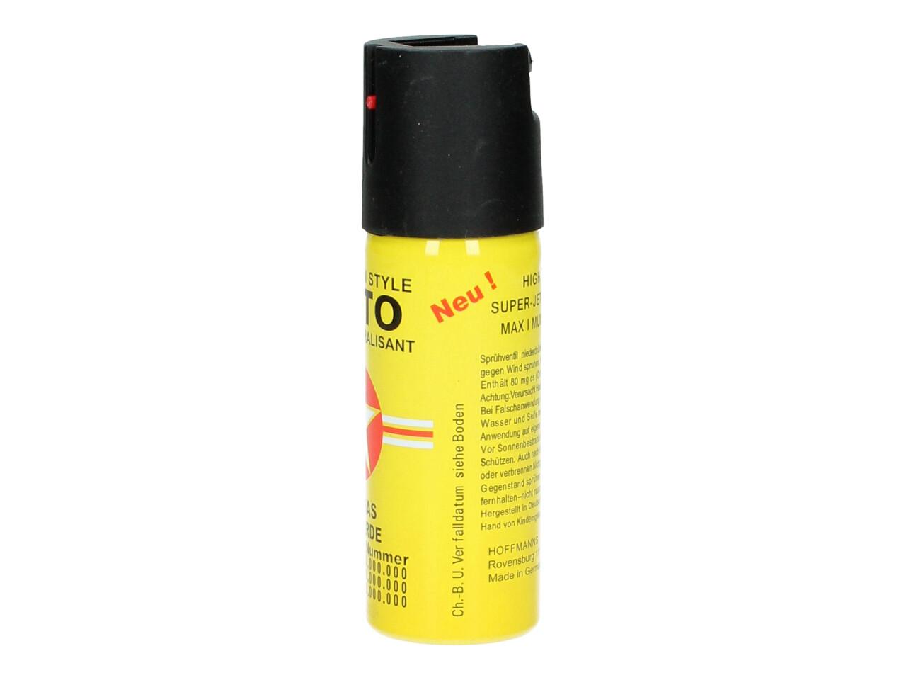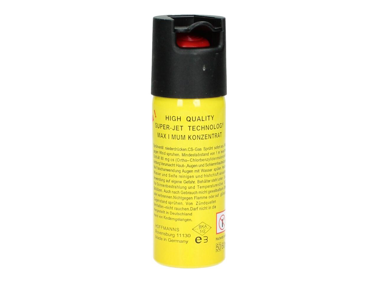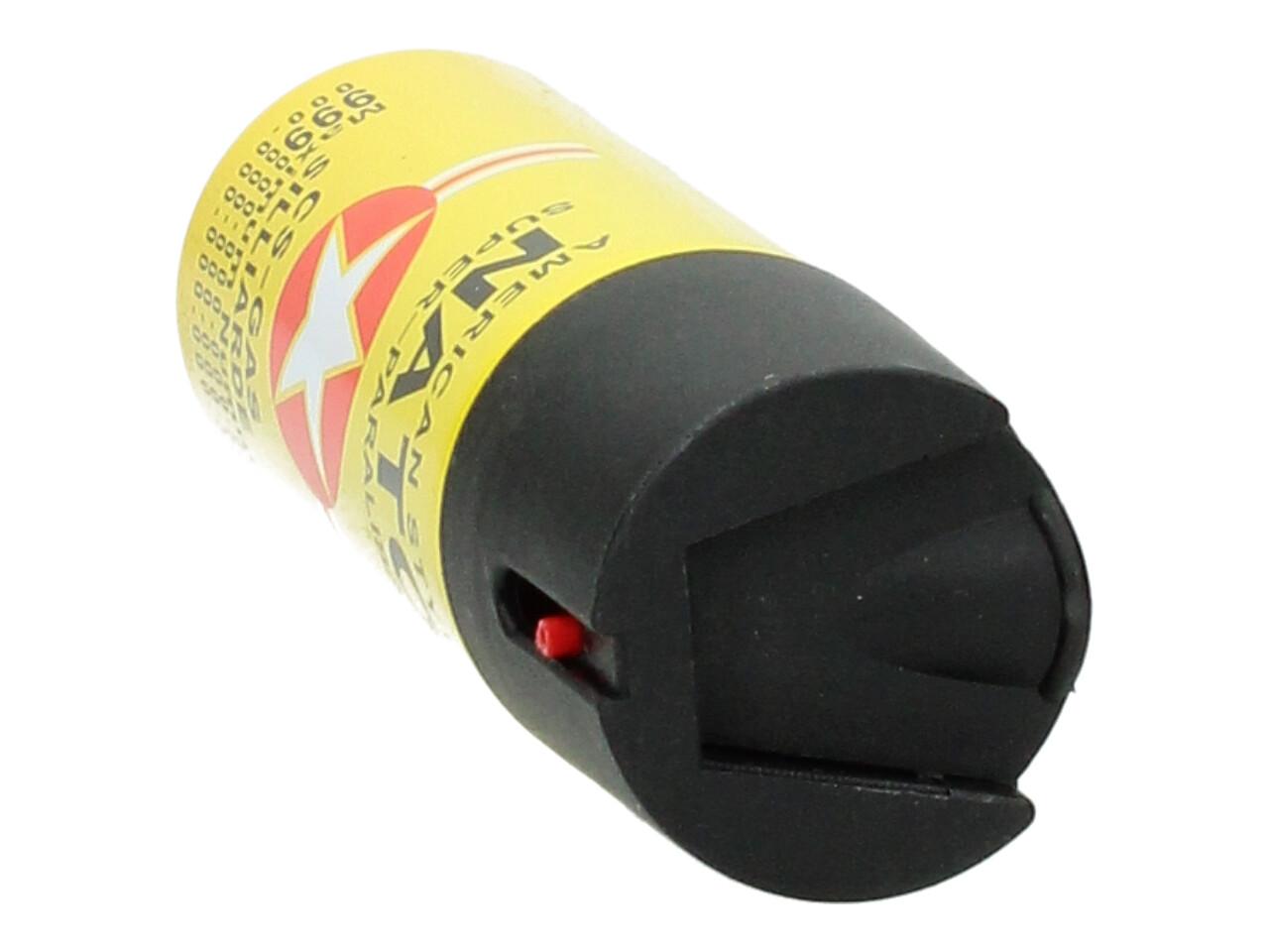 Obranný pepřový sprej 50ml žlutý využijete přiosobní sebeobraně proti útočníkovi, ať už je to člověk, pes či divoké zvíře. Tento sprej dočasně paralyzuje protivníka a způsobí mu silné podráždění očí a dýchacích cest, v některých případech i dočasnou slepotu. Díky své velikosti jej lze snadno schovat do kapsy. Vyvarujte se potřísnění očí, pokožky, či sliznice (stříkejte pokud možno po větru).