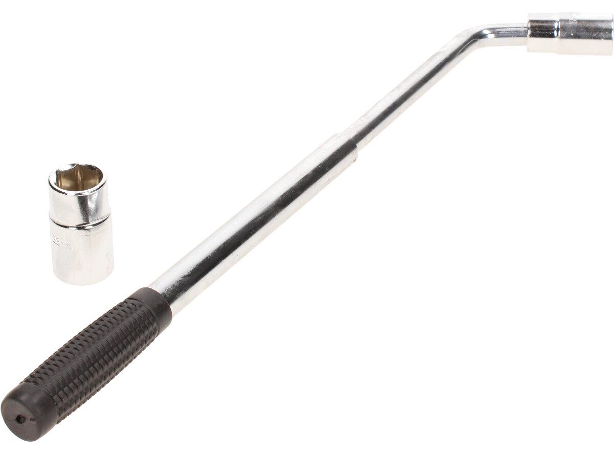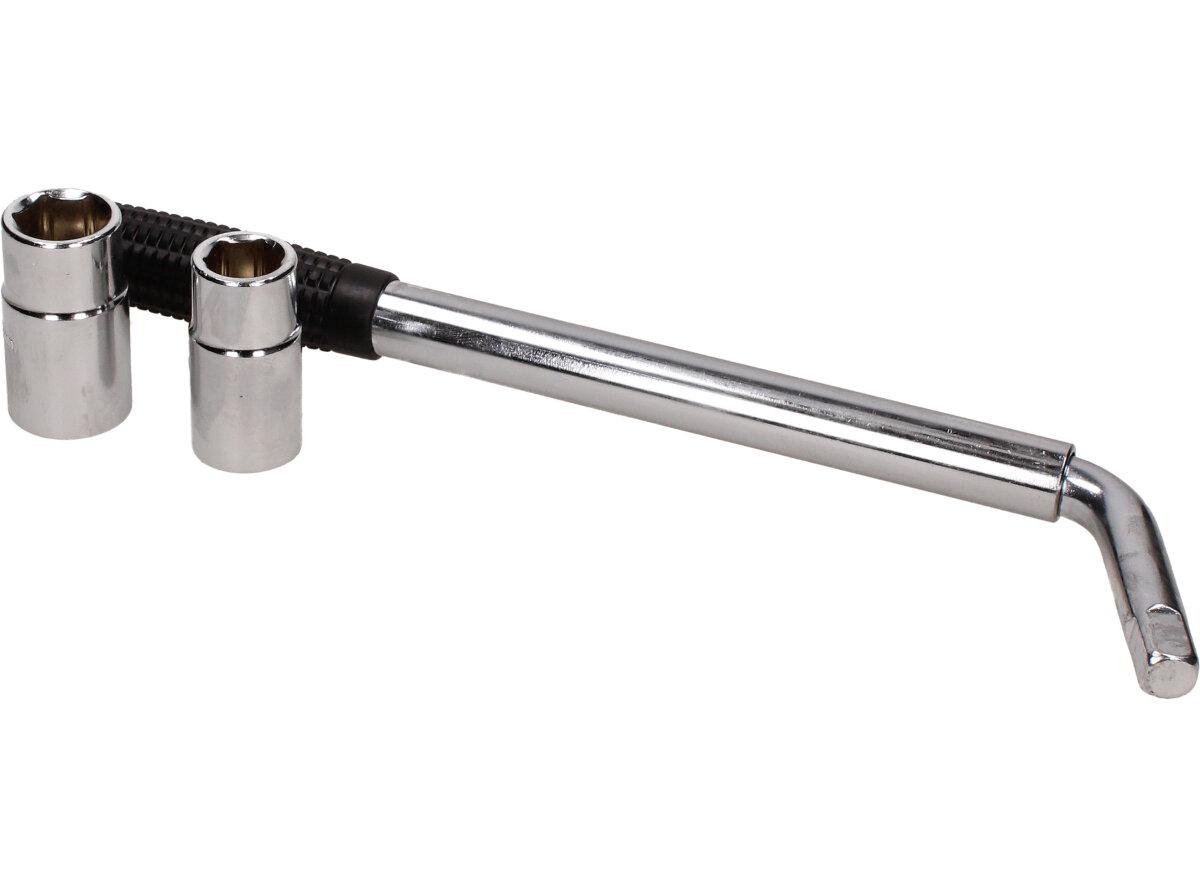 Teleskopický klíč na kola vám pomůže při montáži a demontáži kol z náprav osobních a dodávkových vozů. Hlavní předností tohoto klíče je výsuvná hlava, díky které docílíte delší páky, která zjednodušuje povolování i utahování matic. Klíč je osazen nástavci pro šrouby a matice velikosti 17, 19, 21 a 23 mm. Rukojeť je vyrobena z ergonomicky tvarovaného a tvrzeného plastu.