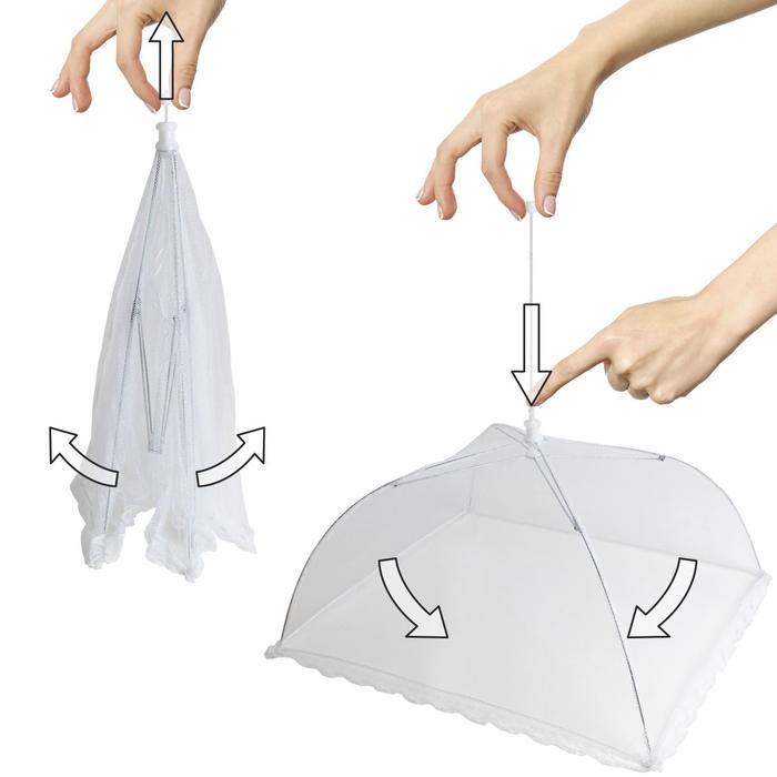 Ochranná síť na potraviny 40x40 cm ve stylu deštníku udržuje mouchy, komáry, vosy a další brouky mimo vaše jídlo. Vezměte si tuto elegantní krajkovou síť s sebou na rodinné grilování, pikniky a jiné venkovní akce a použijte je k zakrytí bufetových tácků, použitých talířů nebo jednotlivých pokrmů. Síťovaný materiál zajišťuje perfektní cirkulaci vzduchu a poskytuje vám jasný pohled na vše, co se pod ním skrývá.
