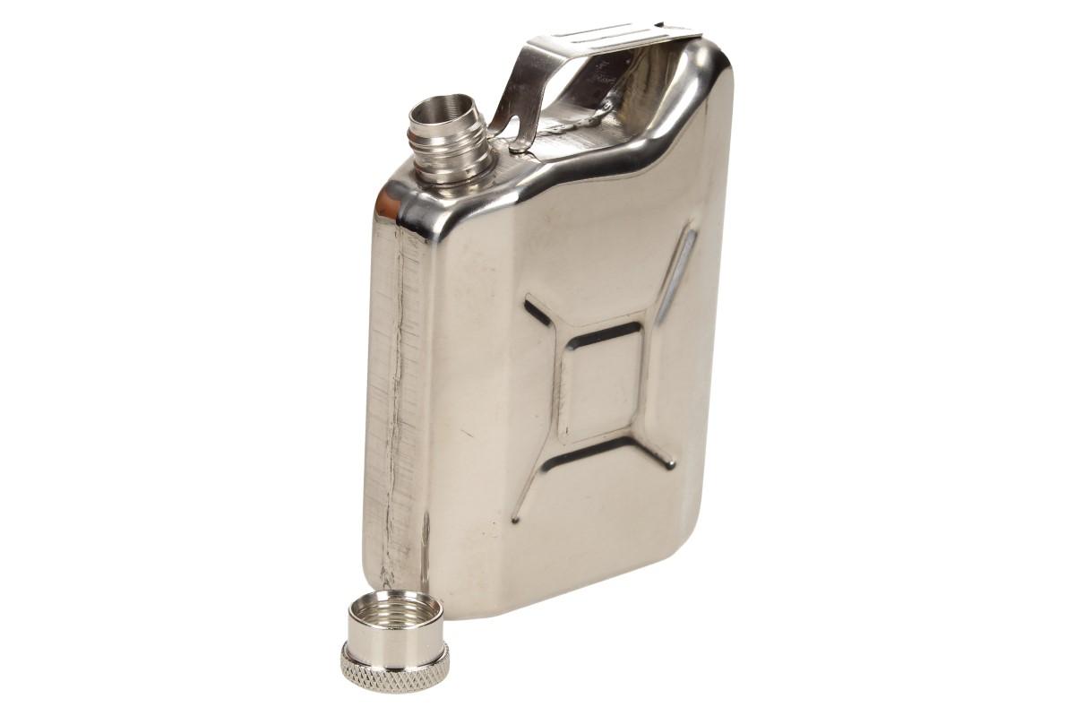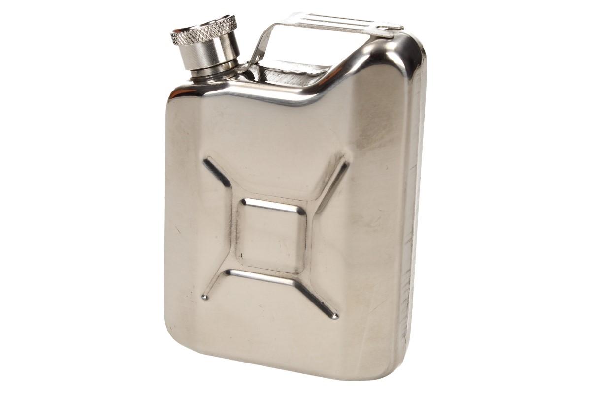 Buďte originální v zimě na horách nebo v létě na vodě s touto placatkou ve tvaru kanystru. Díky praktickému ošku si ji můžete připevnit na karabinu od klíčů a mít svůj oblíbený likér neustále u sebe. Kromě alkoholu si do ní můžete uskladnit i benzín na podpal a jiné důležité kapaliny. Pro své malé rozměry 9,5 x 7 cm je oblíbená, proto že se vejde do náprsní kapsy stejně, jako do kapsy u kalhot.