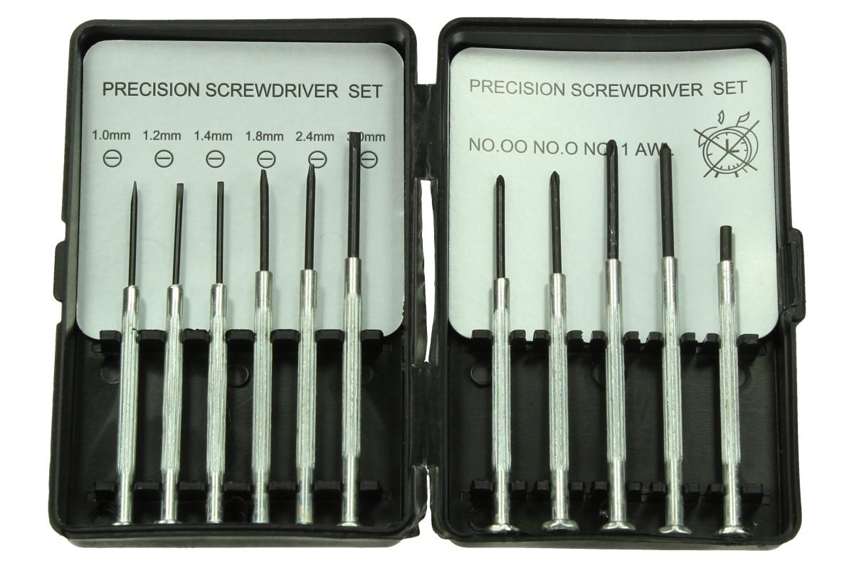 Tato profesionální sada mini šroubováků je vhodná jak pro opraváře jemné elektroniky, tak i pro kutily, kteří si chtějí mobil nebo počítač opravit sami. Díky kovové rukojeti s protiskluzovou úpravou a plochým vrchem rukojeti, se vám s tímto nářadím bude pracovat velice snadno a pohodlně. Sada je uložena v praktickém pouzdře (10,5 x 6,5 cm) a naleznete v ní 6x plochý šroubovák o rozměrech 1,0/ 1,2/ 1,4/ 1,8/ 2,4 a 3mm, 3x křížový šroubovák PH 00/ PH 0 a PH 1, rýsovací jehlu a magnetický podavač.