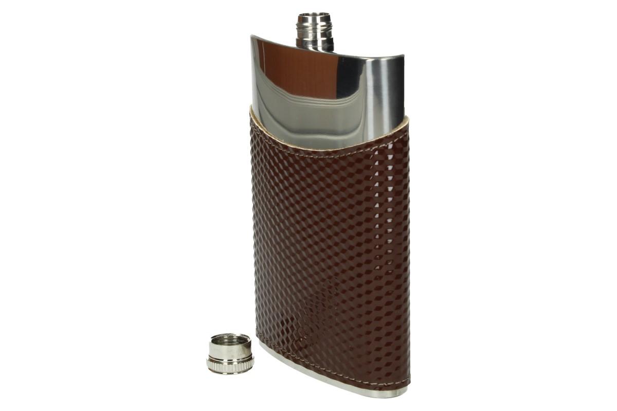 Originální dárek pro všechny muže, gantlemany a intelektuály. Placatka o objemu 200ml je vyrobená z kvalitní nerezové oceli Stainess steel, stejně jako nálevka a kalíšek. Placatka i kalíšek je navíc potažen tmavě hnědou koženkou, která imituje karbon. Touto krásnou sadou potěšíte každého muže. Ideální jako dárek, nebo na cesty vlakem, do přírody či na čekanou.