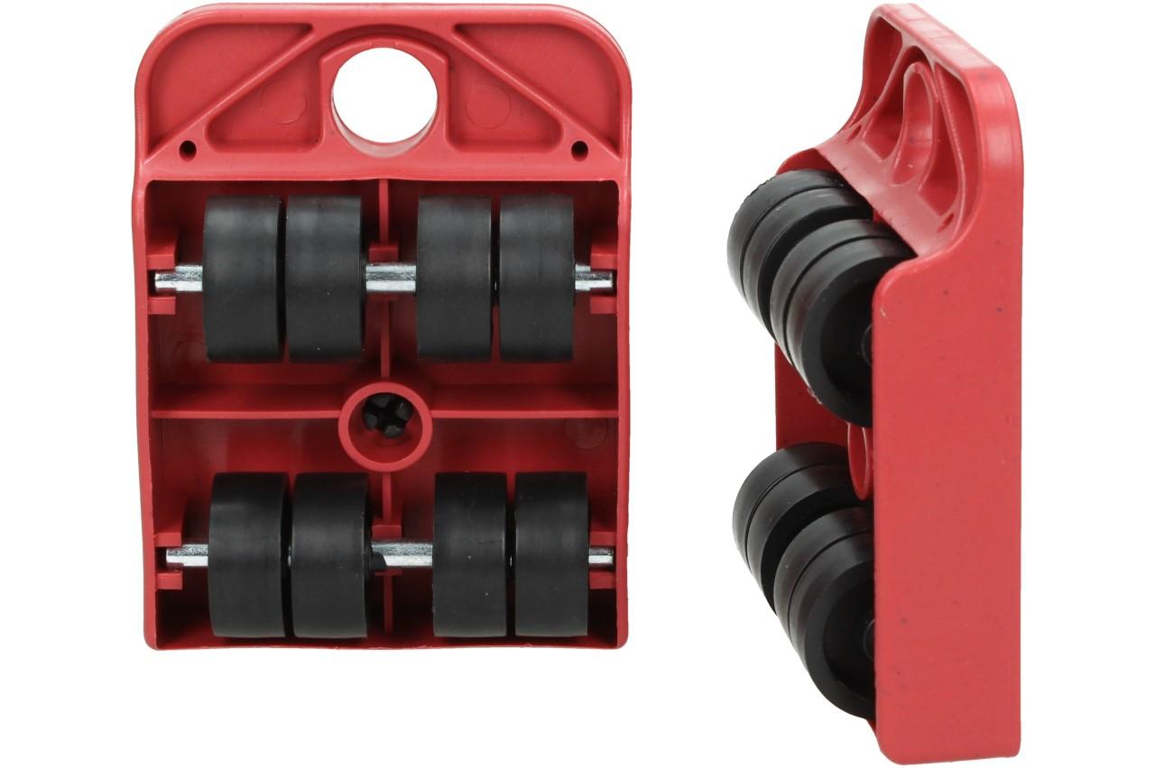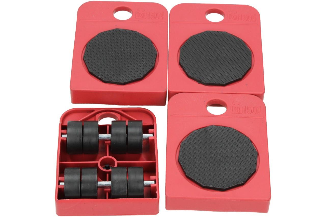 V této sadě obdržíte zvedák a čtyři stěhovací podložky s kolečky, díky kterým těžký nábytek přesunete tam, kam zrovna potřebujete a bez jakékoliv nadměrné námahy. Podložky mají kulatou otočnou plošinu, díky které můžete přesouvat předměty do všech stran. Zvedák zasuňte pod předmět, zdvihněte ho a do roků umístěte podložky. Podložky vkládejte pod nábytek, tak aby kolečka byla orientovaná do směru, kam chcete nábytek přesunout. Maximální nosnost na jednu podložku šiní 150kg.
