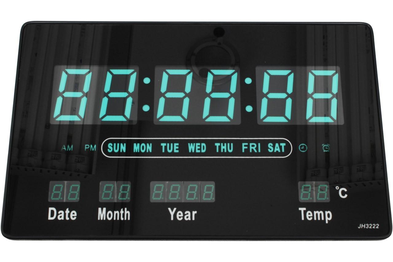 Tyto digitální hodiny JH3222 Vás překvapí svou jednoduchostí a přehledným LCD displejem, který je podsvícený červenou nebo zelenou barvou a dodá hodinám zajímavý vzhled. Obsahují pouze 4 tlačítka na celou manipulaci a návod, jak na to obdržíte v balení. Můžete je pověsit na zeď, díky otvoru na zadní straně nebo jen o něco opřít. Jsou vhodné do bytů, kanceláří, vstupních chodeb, prodejen, čekáren atd. Nastavitelný budík nebo čas pro upozornění např. pracovní doby nebo jiného pravidelného času je samozřejmostí. Na displeji se vám dále zobrazuje pokojová teplota, datum i s rokem, jaký je den a samozřejmě čas. Velikost čísel je 5 cm, tudíž se už nemůžete vymluvit na to, že jste přehlédli čas. Napájení provádíte pomocí 5V adaptéru, který je součástí balení.