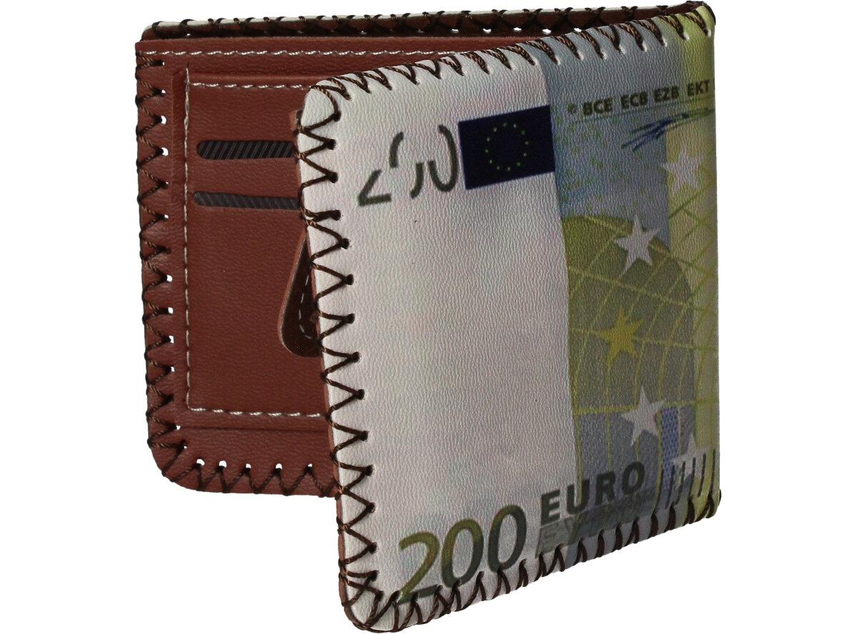 Zákazníkům to ulehčí práci: peněženka 200EUR z umělé kůže Dobrá peněženka za málo peněz s motivem EUR bankovky, nejen na papírová platidla..