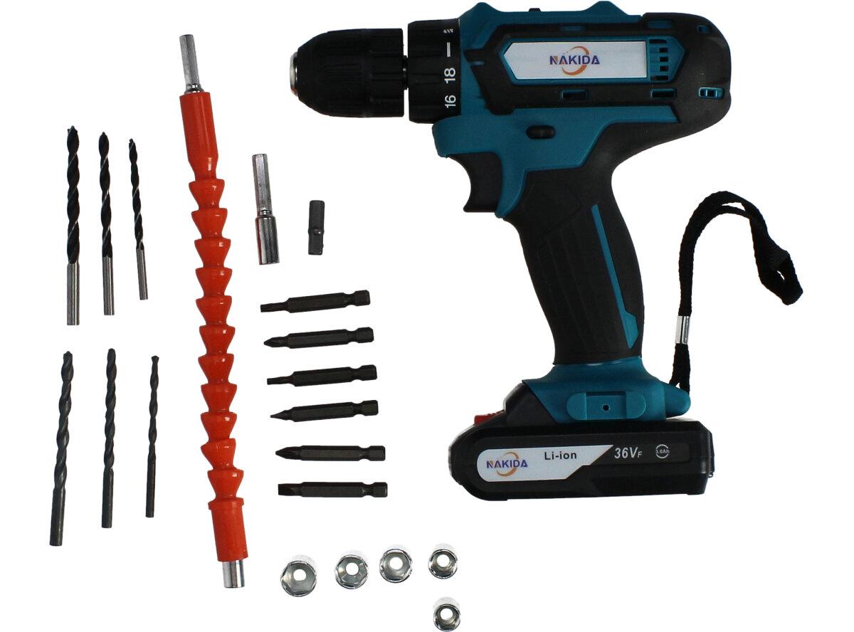 Aku vrtačka 36V včetně 2 kusů 36Vf baterií + sada bitů