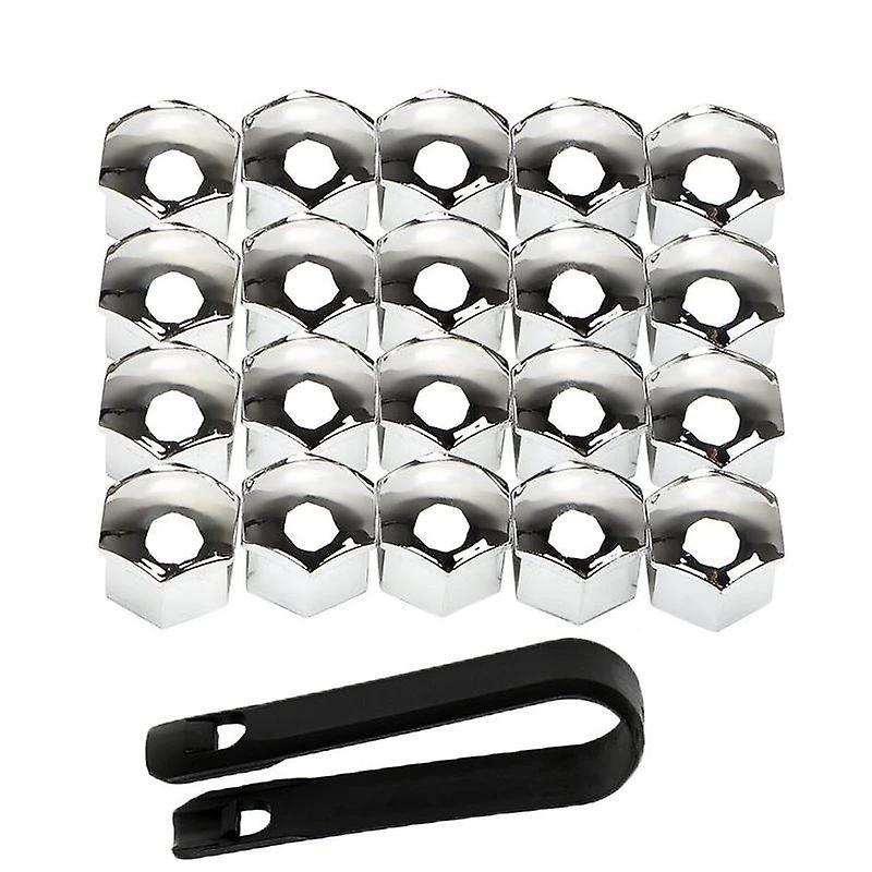 Sada ozdobných krytů pro šrouby kol stříbrné 21 mm 20 ks