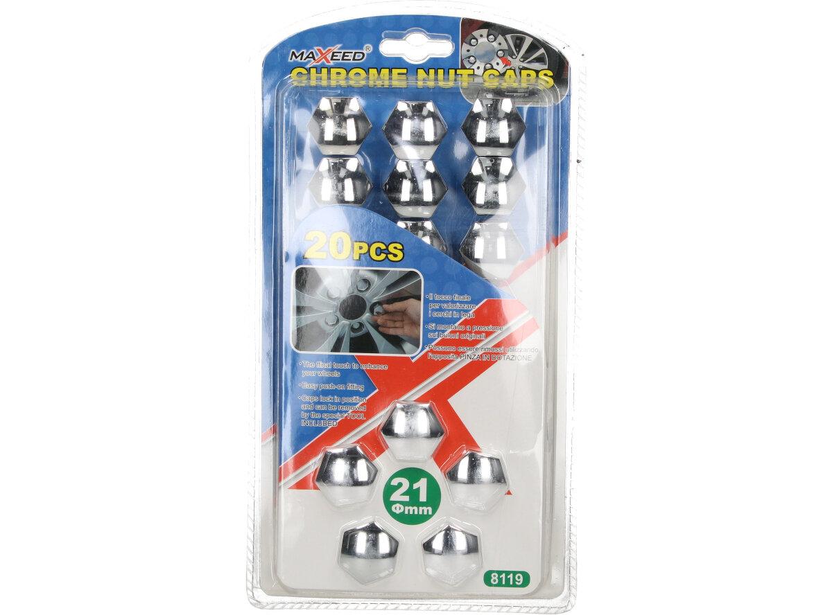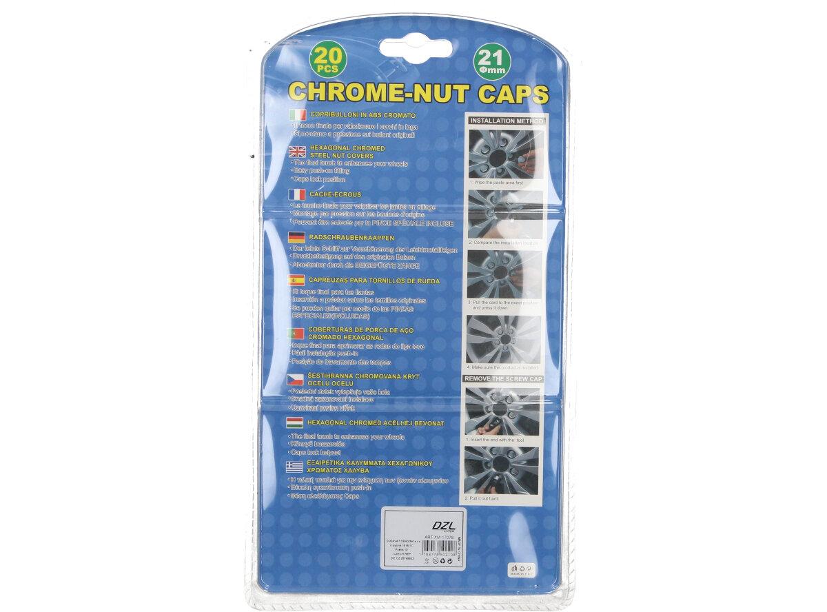 Sada ozdobné kryty šroubů 20 kusů jsou designové, šestihranné kryty kol v chromovaném, moderním provedení. Sada obsahuje 20 kusů chromovaných krytů a jeden klíč pro demontáž. Tyto designové čepičky se hodí na jakýkoliv automobil, motorku nebo i jiné vozidlo, které si chcete zvelebit a vylepšit. Vhodné i jako dárek pro milovníky tuningářských a motorkářských srazů.