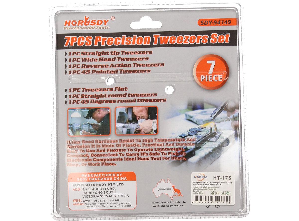 7ks antistatických přesných pinzet z nerezové oceli Hordusy SDY-94149 specifikace: