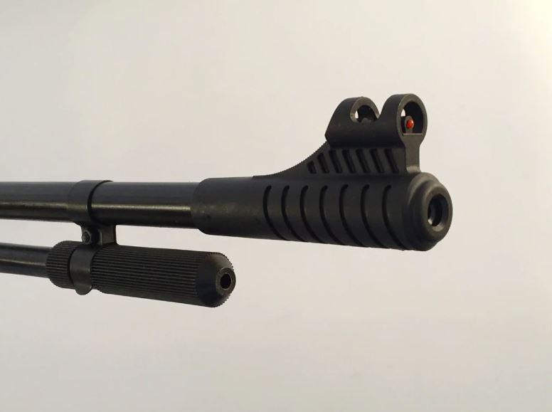 - Zámek na konci struny (zajišťuje bezpečné načtení střely)- Nakládání pelet se provádí zatažením páky pod hlavní