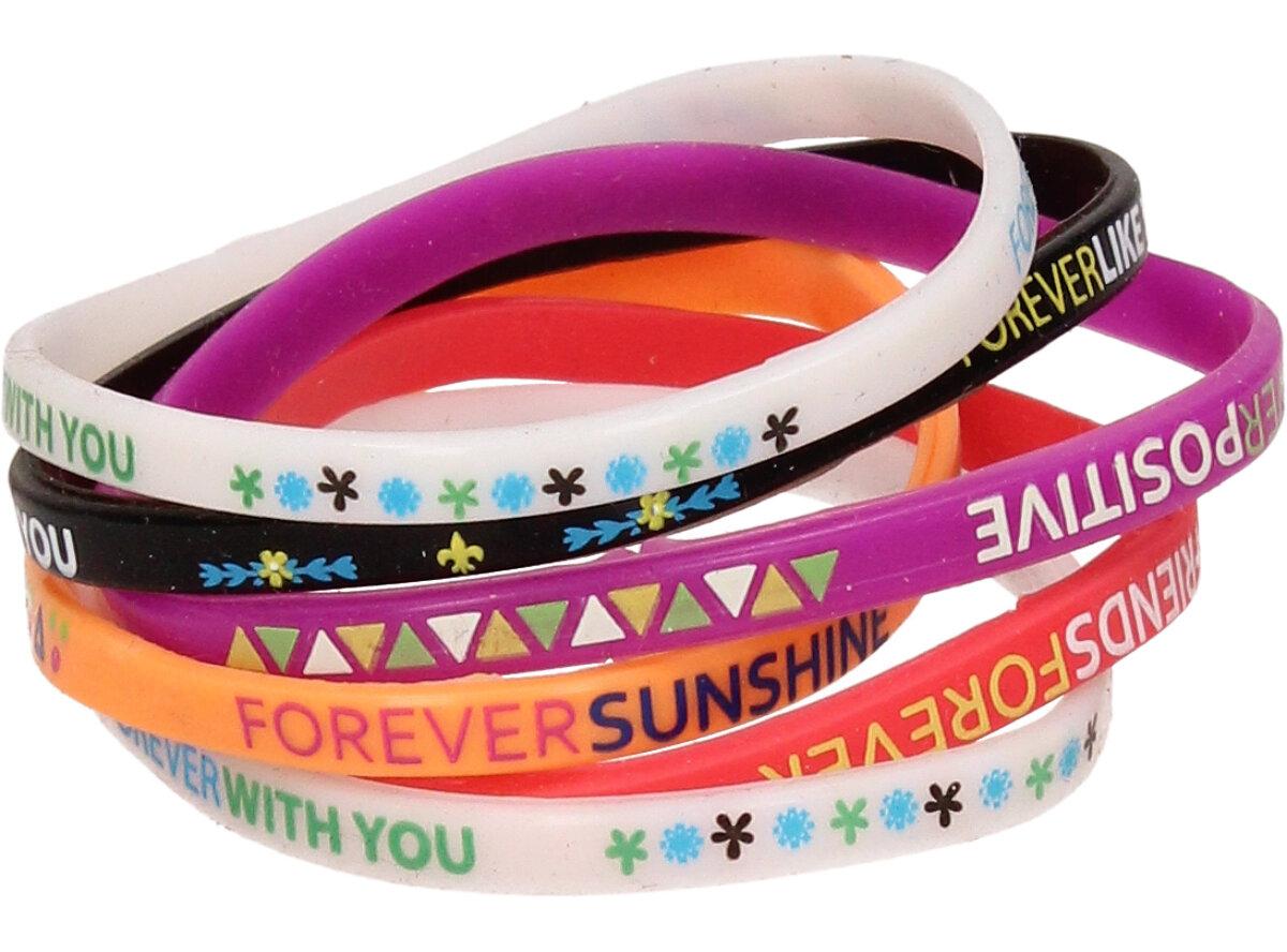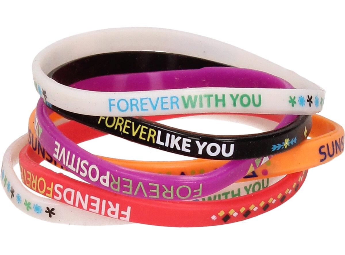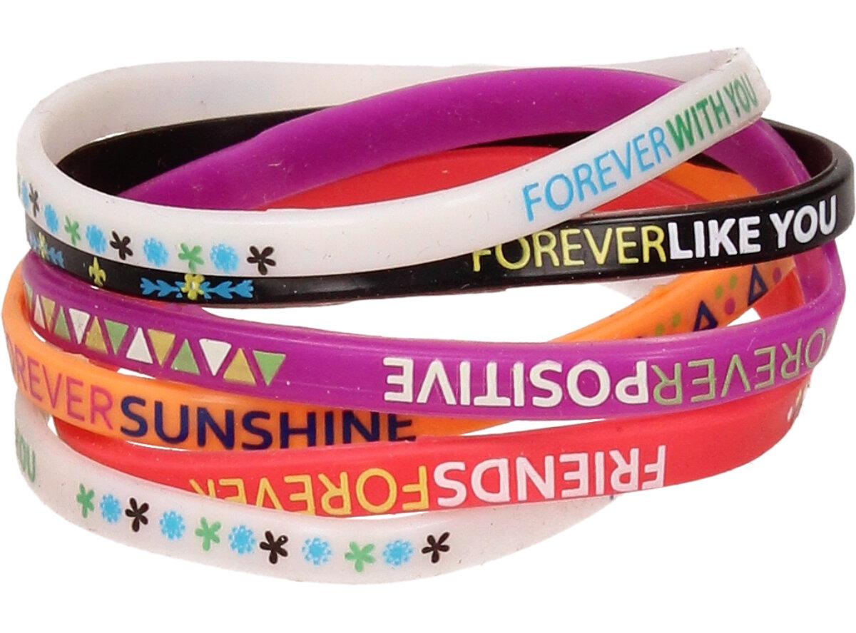 V sadě náramků Forever Bracelet 6 kusů naleznete barevné náramky vyrobené ze silikonu, každý náramek je pro jinou vlastnost.