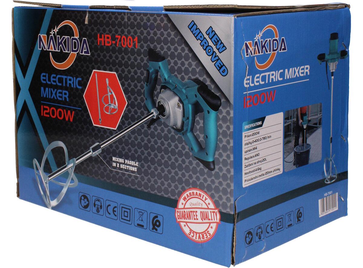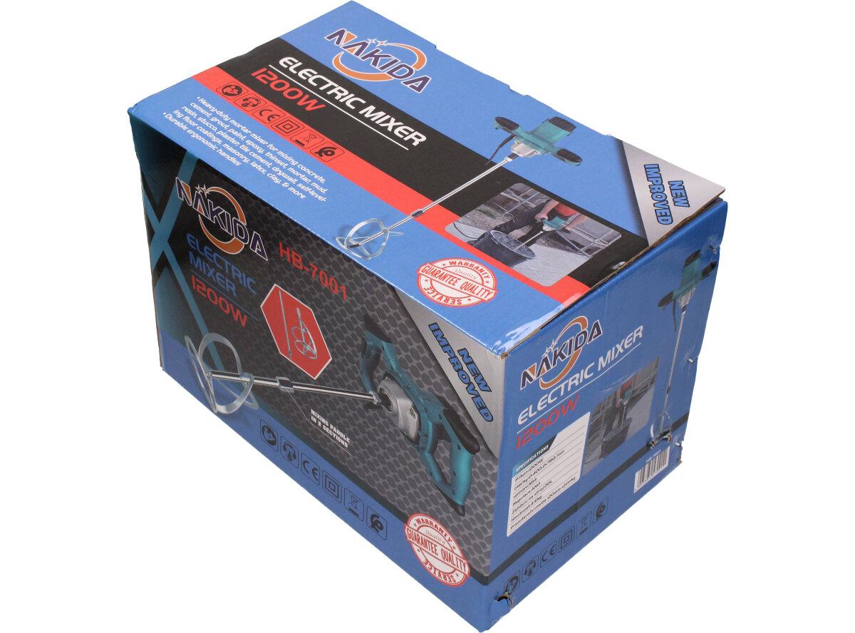 Míchadlo, míchač barev a omítek značky Nakida o výkonu 1200W můžete použít jak pro lehké kapaliny (barvy, laky nebo omítky), tak pro těžší (tekuté) látky (lepidlo, pasta, plnivo nebo cementová malta). Pokud se plánujete rekonstrukce nebo stavební práce, je míchačka nutností, bez ní se neobejdete!