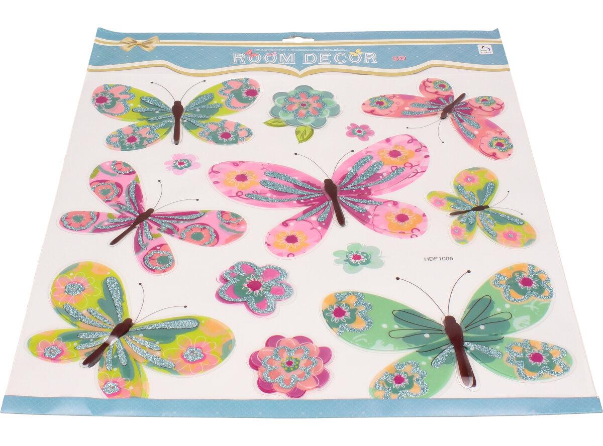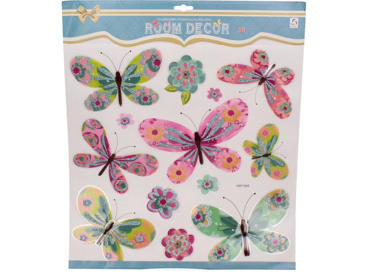 3D samolepky na zeď mix barevných motýlů HDF1005