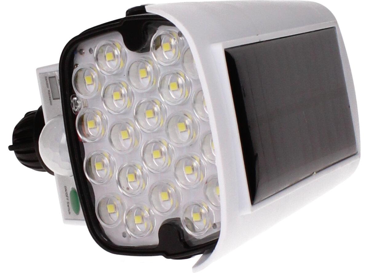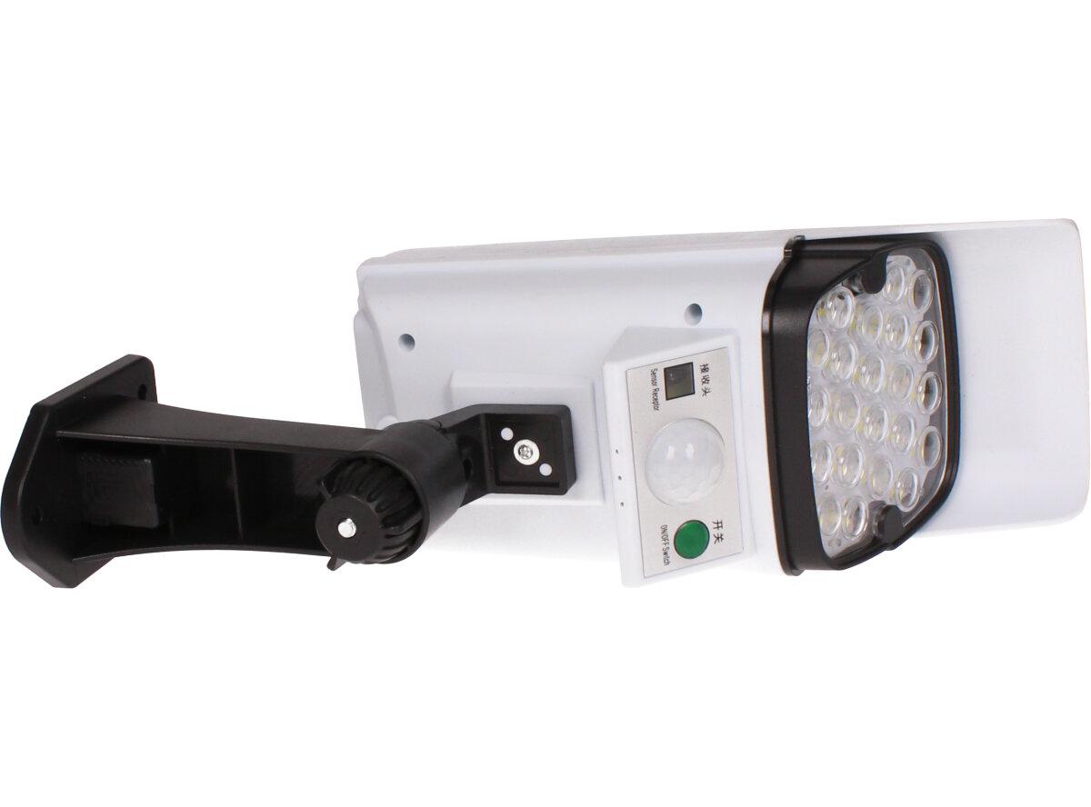 Imitace kamery s led solárním světlem se senzorem pohybu. Nabíjí se ze sluníčka a dá se ovládat pomocí dálkového ovladače, který je součástí balení.