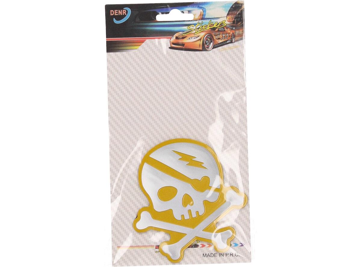 Kovová samolepka lebka Chrom 7x8cm žlutá
