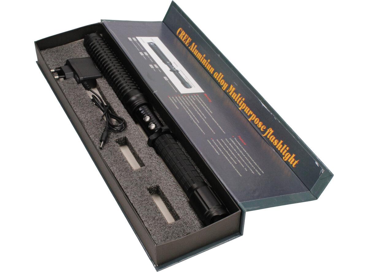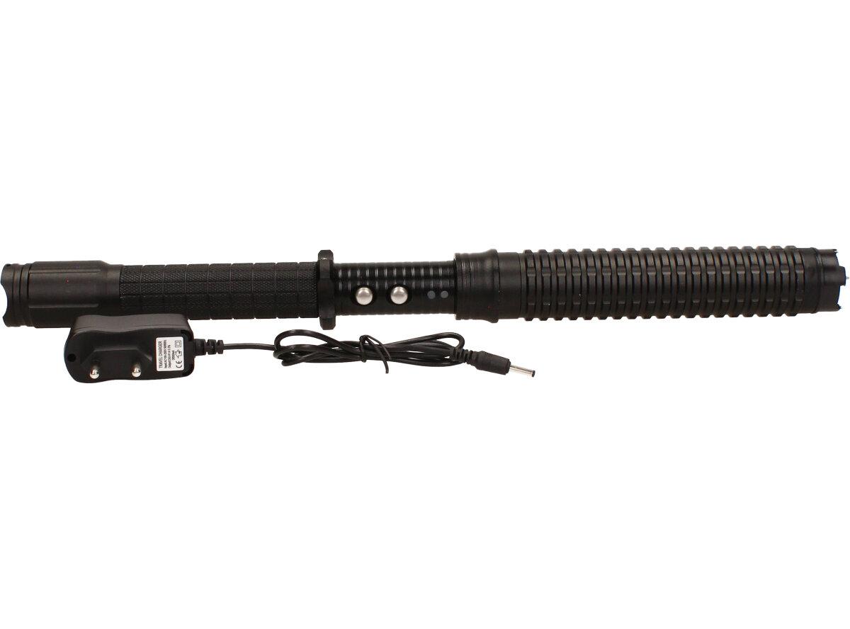 Teleskopická nabíjecí baterka s paralyzérem 3v1 z kvalitního hliníku s výkonem diody 3 W a velmi silným paralyzérem, kterou můžete nosit kamkoliv s sebou, tašce v autě nebo na opasku. Poskytne ochranu před útočníky. Jednoduchý dvoupolohový vypínač umožňuje zapnutí a vypnutí baterky a přepínač na zadní straně pak odjišťuje paralyzér. Elektrický šok se po odjištění spouští stisknutím a držením tlačítka. Při kontaktu s přední stranou baterky útočník dostane elektrický šok, který jej na chvíli ochromí. Po delším kontaktu způsobí paralyzér ochromení a ztrátu orientace na několik minut. Policejní baterka funguje na akumulátor a umožňuje tak dobíjení přímo ze zásuvky. Doba dobíjení udávaná výrobcem je 4 hodiny. Součástí balení je i nabíječka na 220V. Slouží jako obušek, baterka a paralyzer