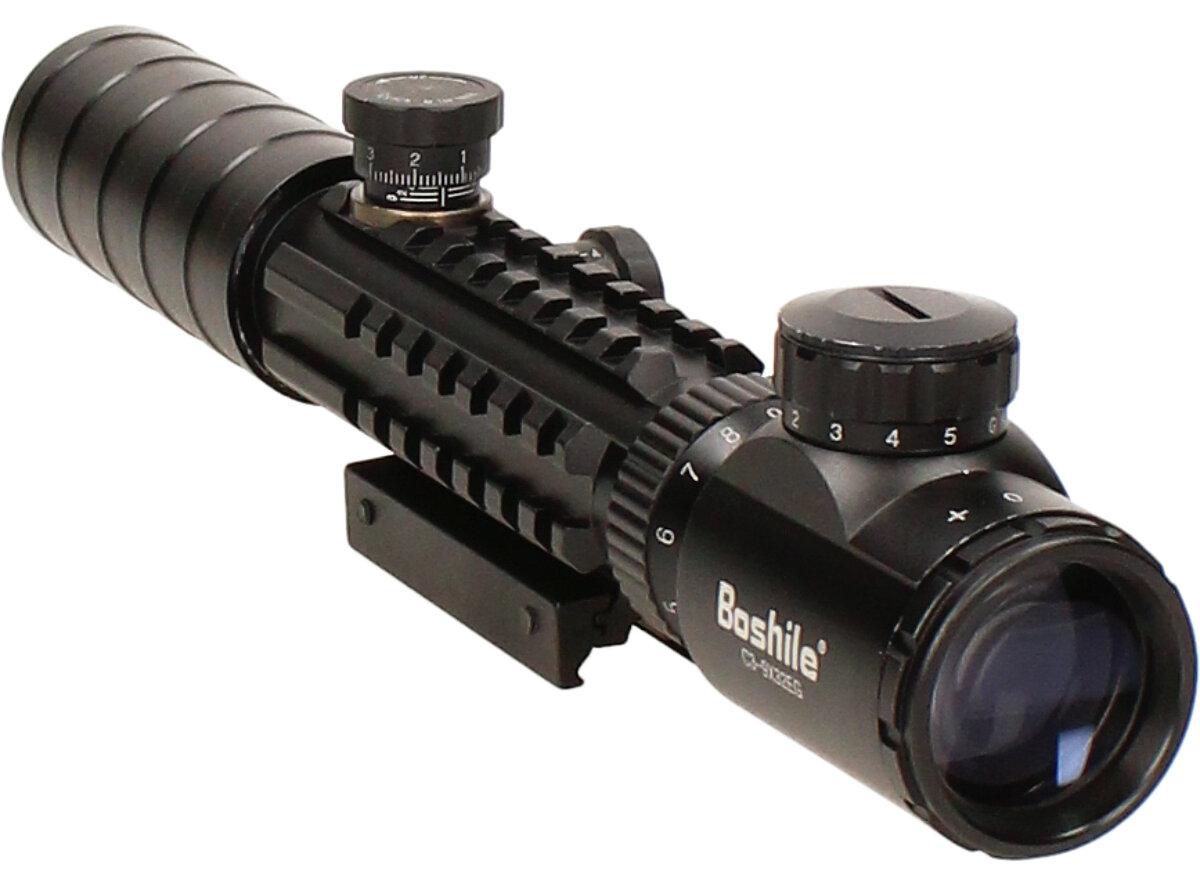 Puškohled Bosile C3-9x32EG s montážní jednotkou na 11mm lištu . Záměrná osnova je v druhé fokální rovině má dvojí podsvícení červené a zelené, široké zorné pole, plně antireflexní, mlze a vodě odolný, kryt optiky. Délka 300 mm, o 42,30 mm, váha 0.5 kg (iz montáží). Kvalitní puškohled vhodný na všechny druhy vzduchových, airsoftových ale i loveckých zbraní. Dodávané s ochrannými kryty na sklíčka. Po upevnění puškohledu na zbraň je možné, že zaměřování a střelba nebude přesná. Pokud tak bude, třeba si puškohled nastavit pomocí dvou nastavitelných koleček. K puškohledu je dodáván i imbusový klíč na upevnění.