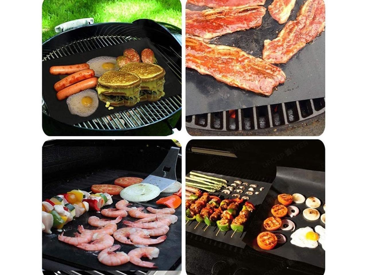 Lepí se Vám na mřížce maso a občas i propadne nějaký kousek kuřete, nebo zeleniny do ohně? Praktická podložkoa s kterou budete moci grilovat i drobnékousky masa a nebo i čínské speciality, které by Vám mřížkou propadly! Specifikace:Materiál: Teflonový sklolaminátHmotnost soupravy: 233gBarva: černáMnožství: 5 ksRozměry (délka / šířka): 40cm / 33cm