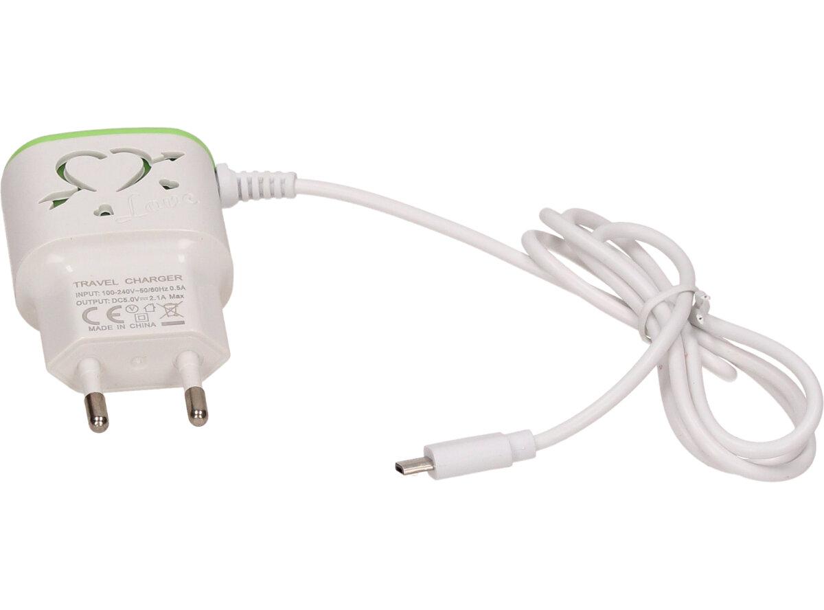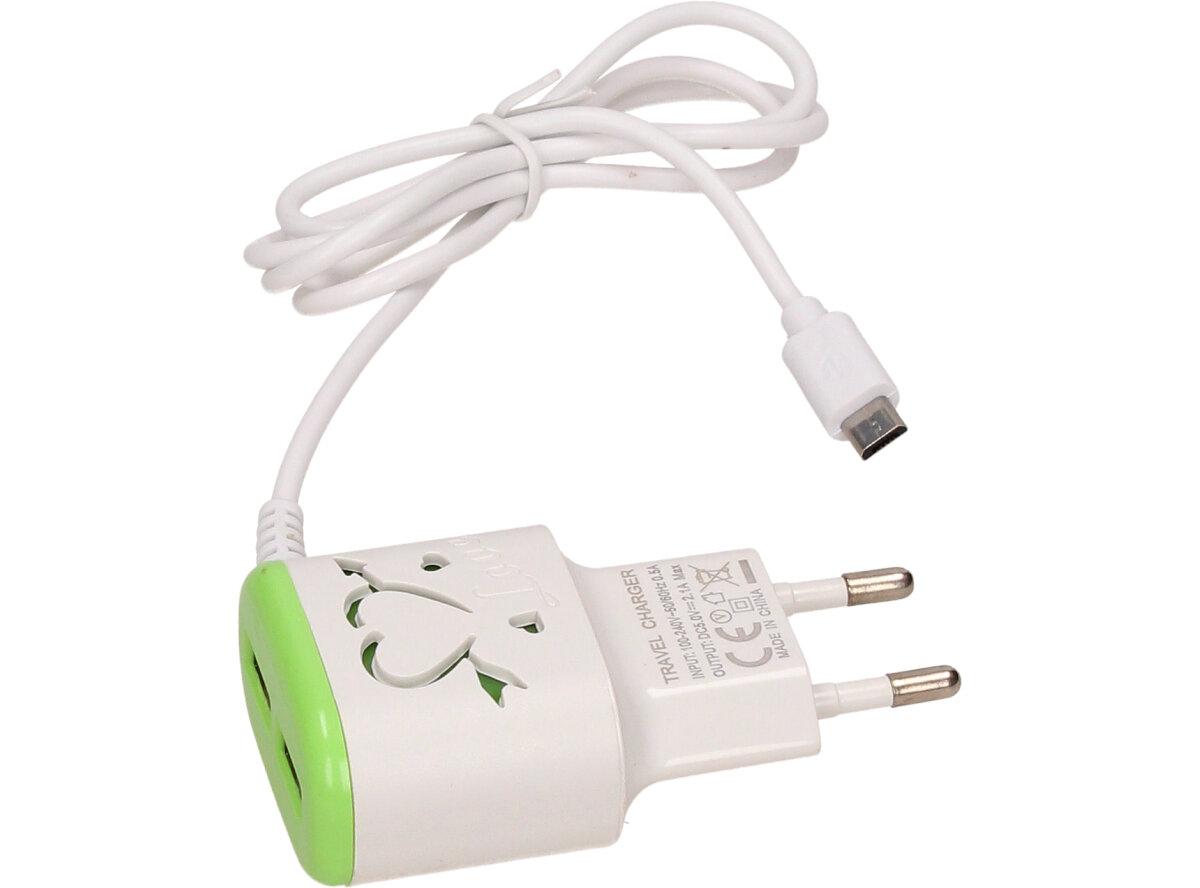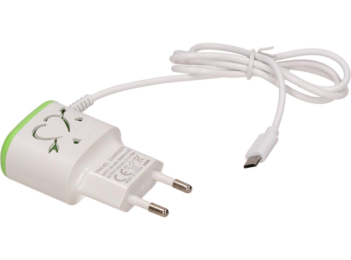 Praktická nabíječka pro telefony a zařízění s nabíjením Micro USB s dlouhým 85cm kabelem a lampičkou, která při zastrčení do zásuvky svítí