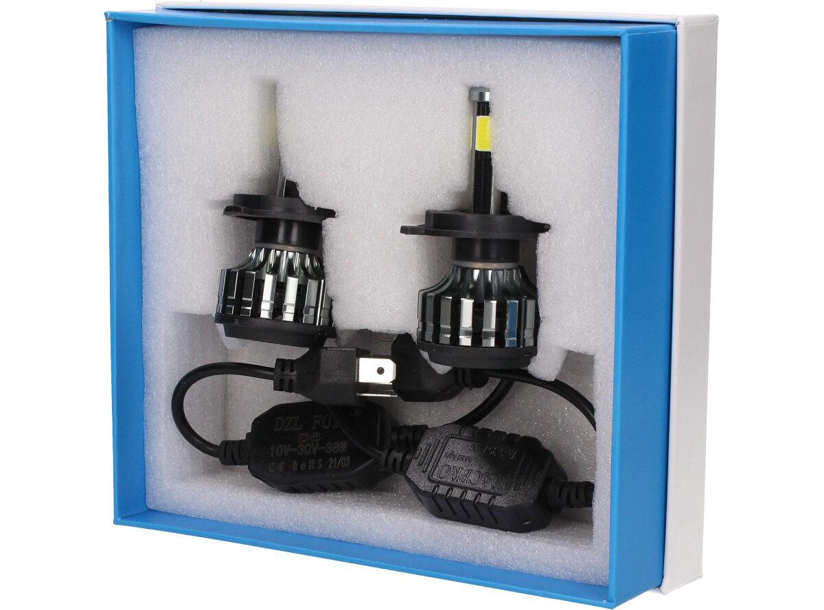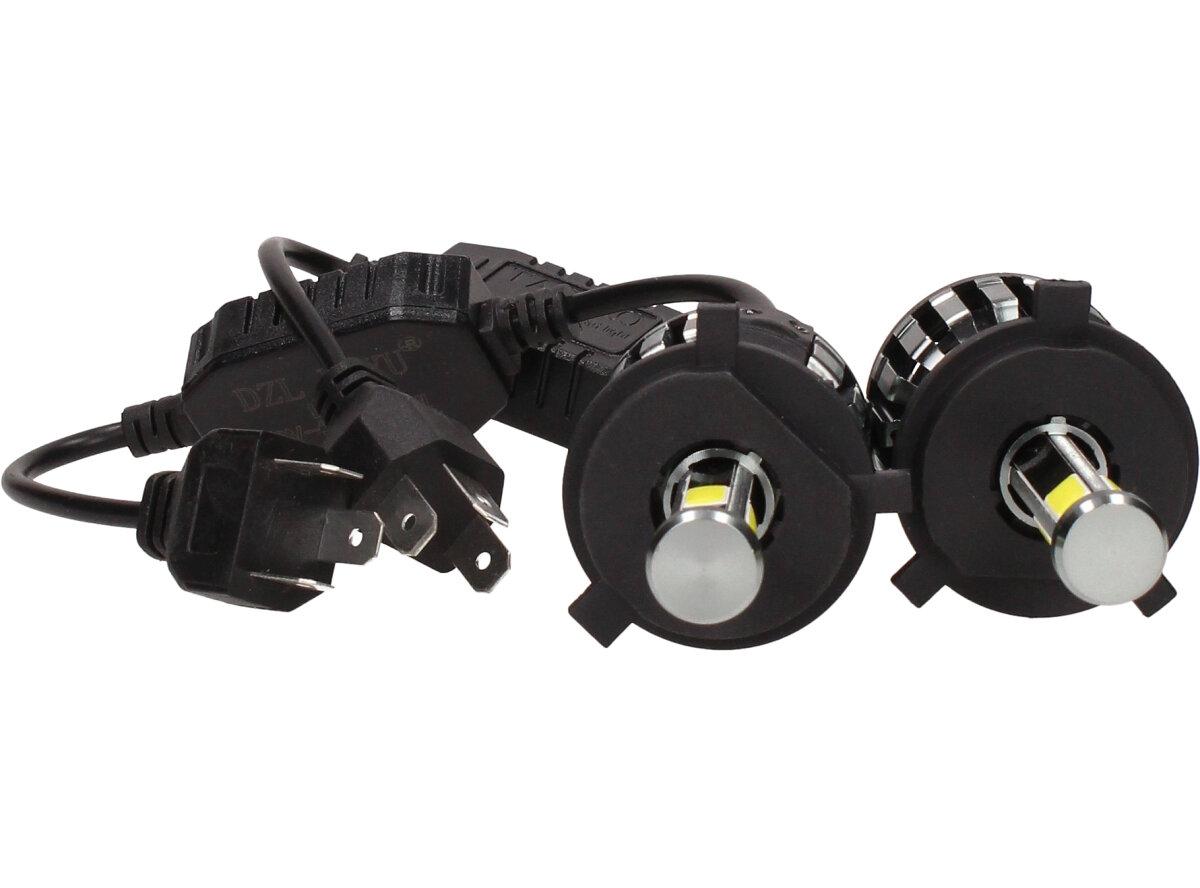 Velice odolná LED H4 D6 žárovka s barvou světla 6000K (studená bílá) sada 2 kusy do světlometu do auta na 12V, 24V jako náhrada za klasickou nevýkonou žárovku H4.