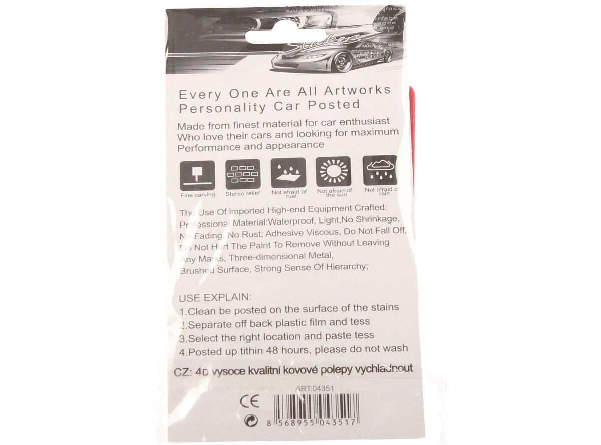 Tuhle nálepku můžete nalepit kamkoliv, nejen na auto, ale i na skříňku, ledničku, kolo, motorku, notebook nebo jen na sešit. Kvalitní aluminiová nálepka o rozměrech 6 x 5,5 cm je opatřena oboustranou lepící páskou a neničí povrch laku na autě. Samolepka je opatřena vrchní průhlednou ochrannou folií, po nalepení samolepky na předmět, tuto ochranou folii strhněte. Krásná samolepka je určitě vhodná i jako dáreček pro vaše partnery i kamarády. Neničí povrch laku a je odolná vůči sněhu i dešti. Samolepka se snadno aplikuje díky samolepicí vrstvě na zadní straně. Vhodná pro všechny fanoušky značky Peugeot a milovníky automobilového průmyslu