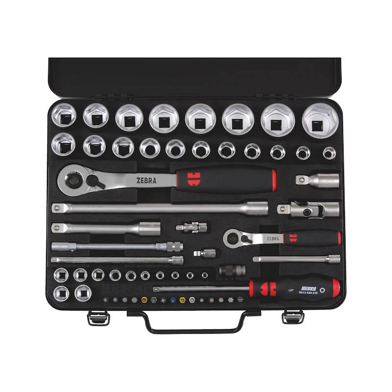 59 ks: Velká sada 1/4" a 1/2" kombinovaných klíčů pro mimořádně široké použití, s přepínací ráčnou