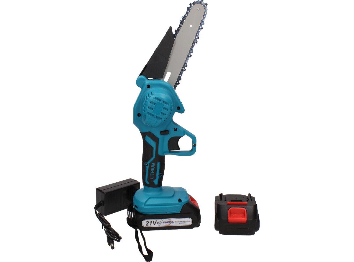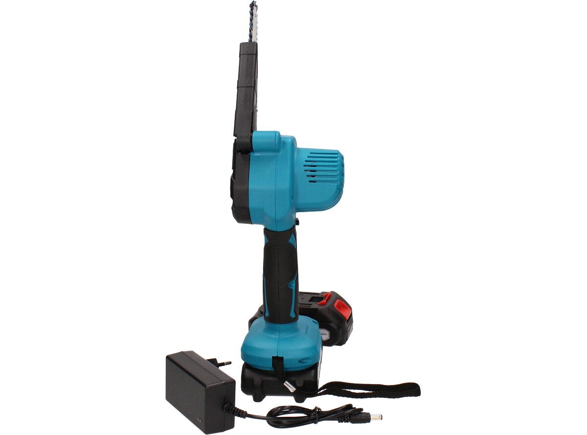Elektrická ruční pila je vhodná pro zahradnictví a proto by neměla chybět v žádné kůlně. Snadno s ní prořezáte keře, tůje, odříznete větev a mnoho dalšího. Je zde přidané také tlačítko bezpečnostního zámku, které zabrání nechtěnému spuštění. Tato pila se vyznačuje vysokou tvrdostí řetězu a nízkou hmotností, díky které ji můžete používat pouze jednou rukou. Měděný motor zajistí silný výkon a nižší spotřebu energie, to následně zvyšuje efektivitu Vaší práce. Ergonomicky tvarovaná rukojeť poskytne pohodlné a pevné uchopení. Můžete si také nastavit i rychlost řezání, klasickým stlačováním spíneče. Spolu s pilou obdržíte v balení 2x Li-ionovou baterii 7500mAh