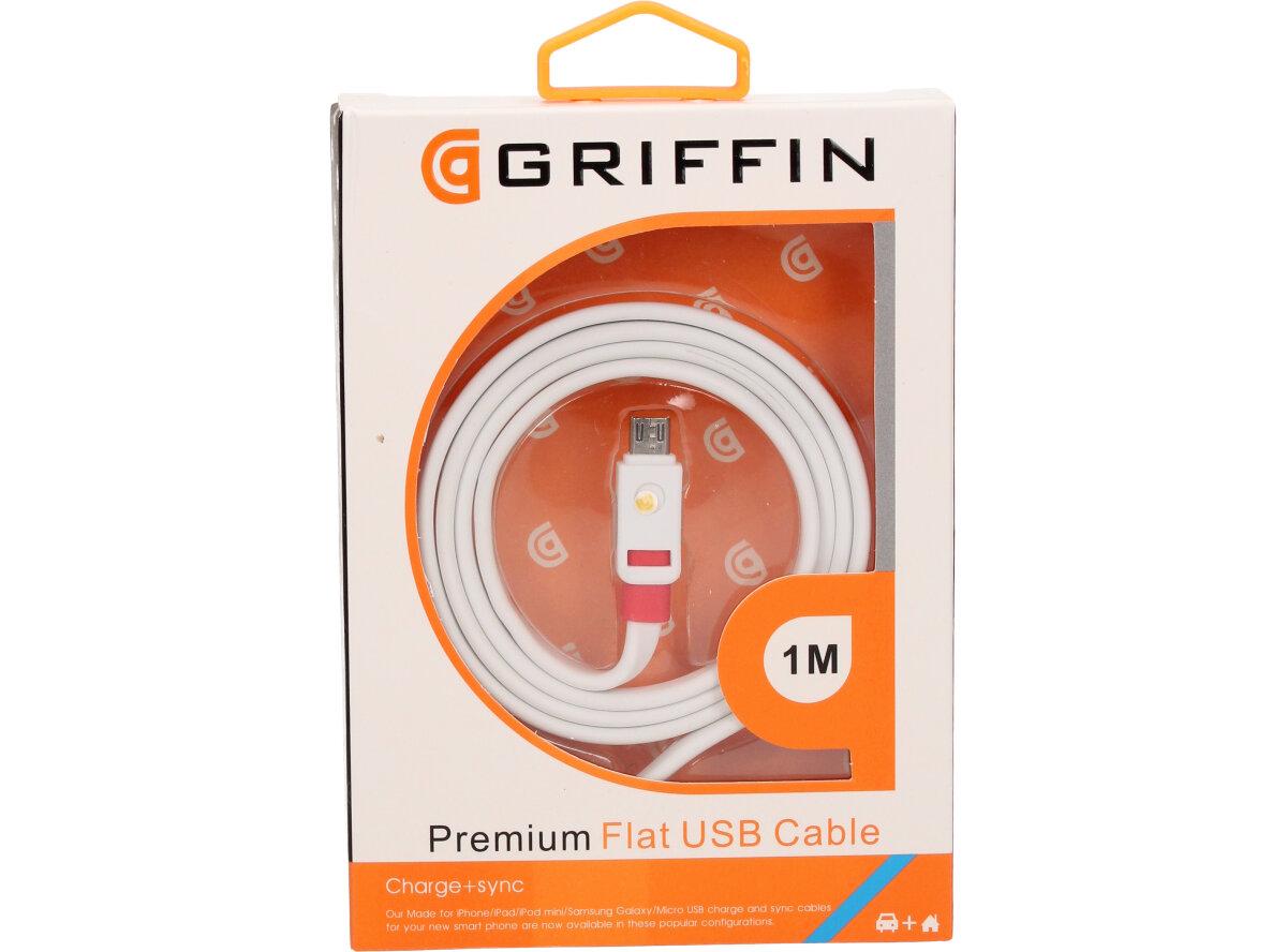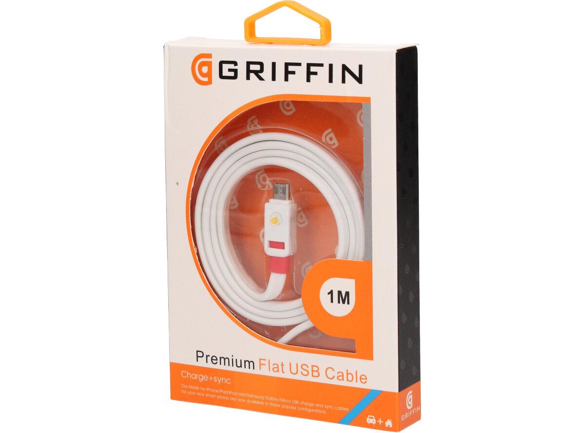 Premium Flat USB Cable Micro USB 1m Griffin bílá