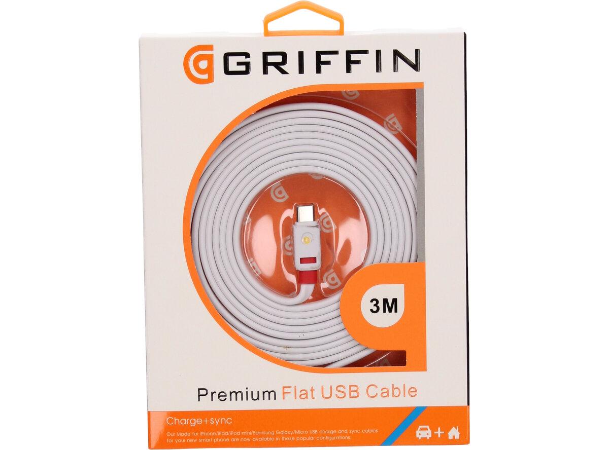 Premium Flat USB-C Cable 3m Griffin Bílý