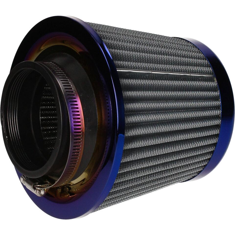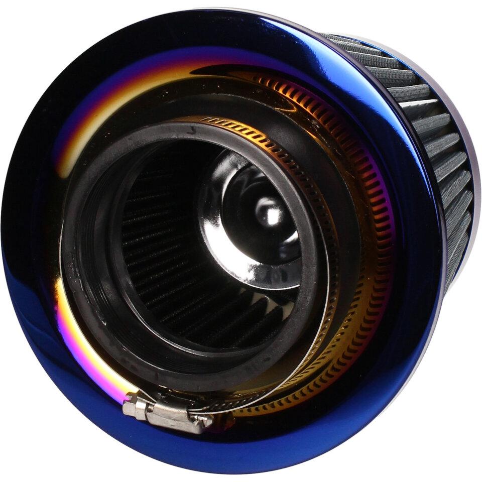 Tuningový vzduchový filtr s přírubou o průměru 70mm pro montáž přímo na sání (karburátor). Jedná se o speciální vzduchový filtr s krycí vnější plechovou síťkou a vnitřní pěnovo-textilní filtrační vložkou. Filtry s gumovou přírubou jsou určeny pro univerzální použití na aplikacích (malé motocykly, čtyřkolky, skútry, motokáry, přídavné motory a další), kdy je možná montáž vzduchového filtru přímo na hrdlo sání ( karburátor) při vyloučení air-boxu vzduchového filtru.