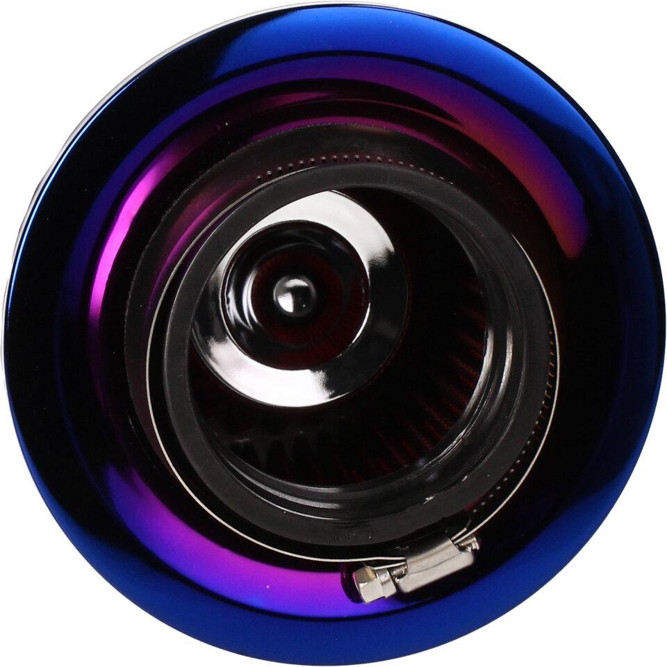 Tuningový vzduchový filtr s přírubou o průměru 70mm pro montáž přímo na sání (karburátor). Jedná se o speciální vzduchový filtr s krycí vnější plechovou síťkou a vnitřní pěnovo-textilní filtrační vložkou. Filtry s gumovou přírubou jsou určeny pro univerzální použití na aplikacích (malé motocykly, čtyřkolky, skútry, motokáry, přídavné motory a další), kdy je možná montáž vzduchového filtru přímo na hrdlo sání ( karburátor) při vyloučení air-boxu vzduchového filtru.