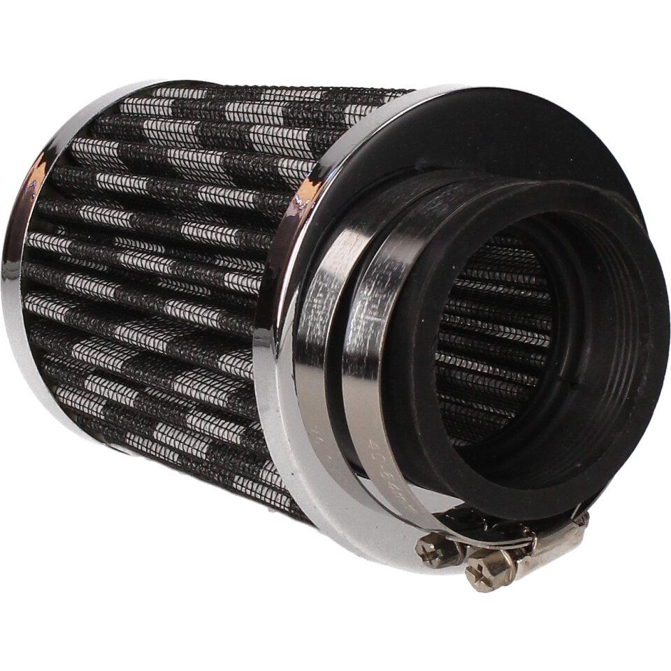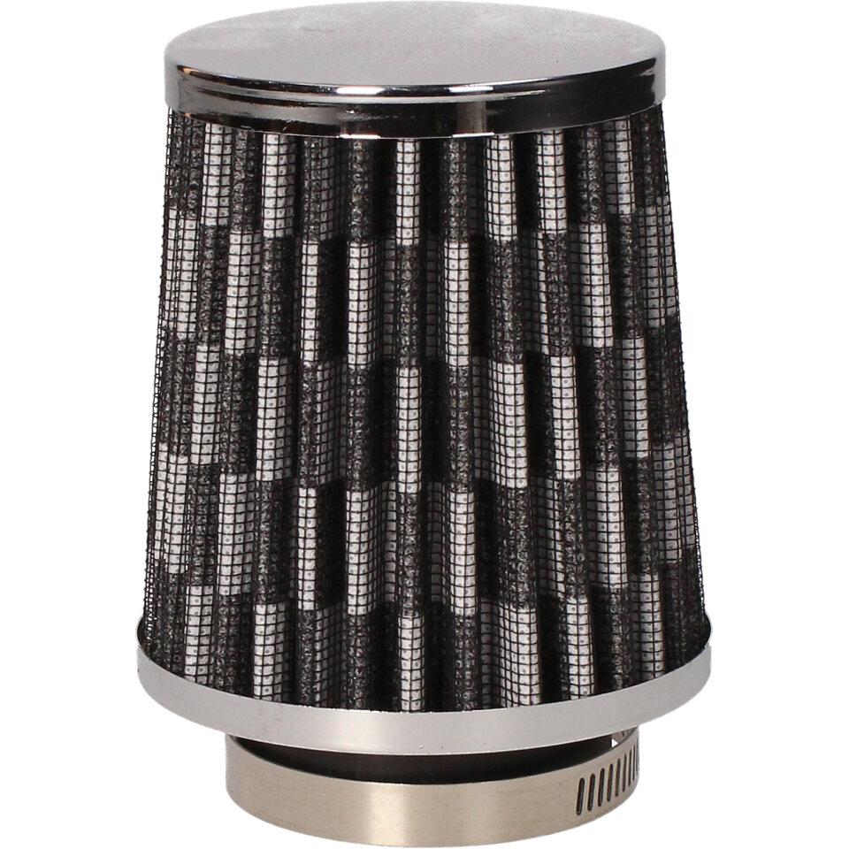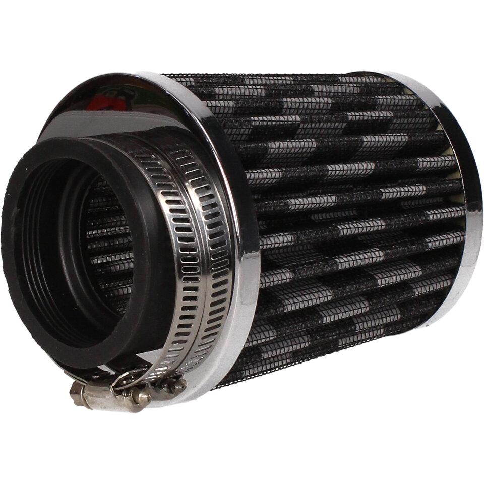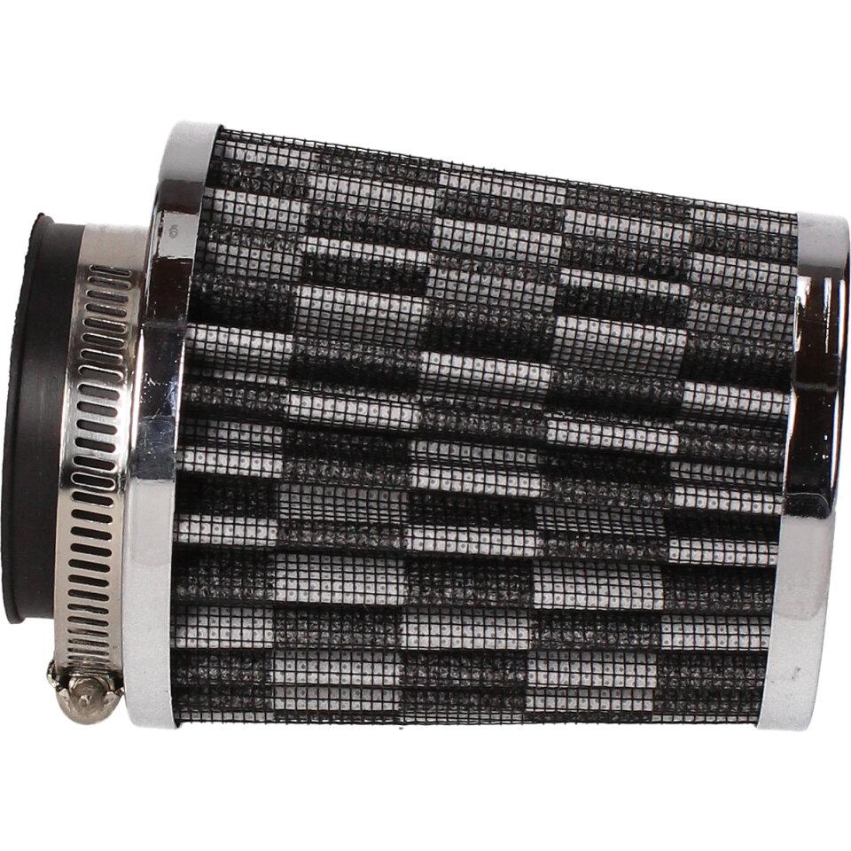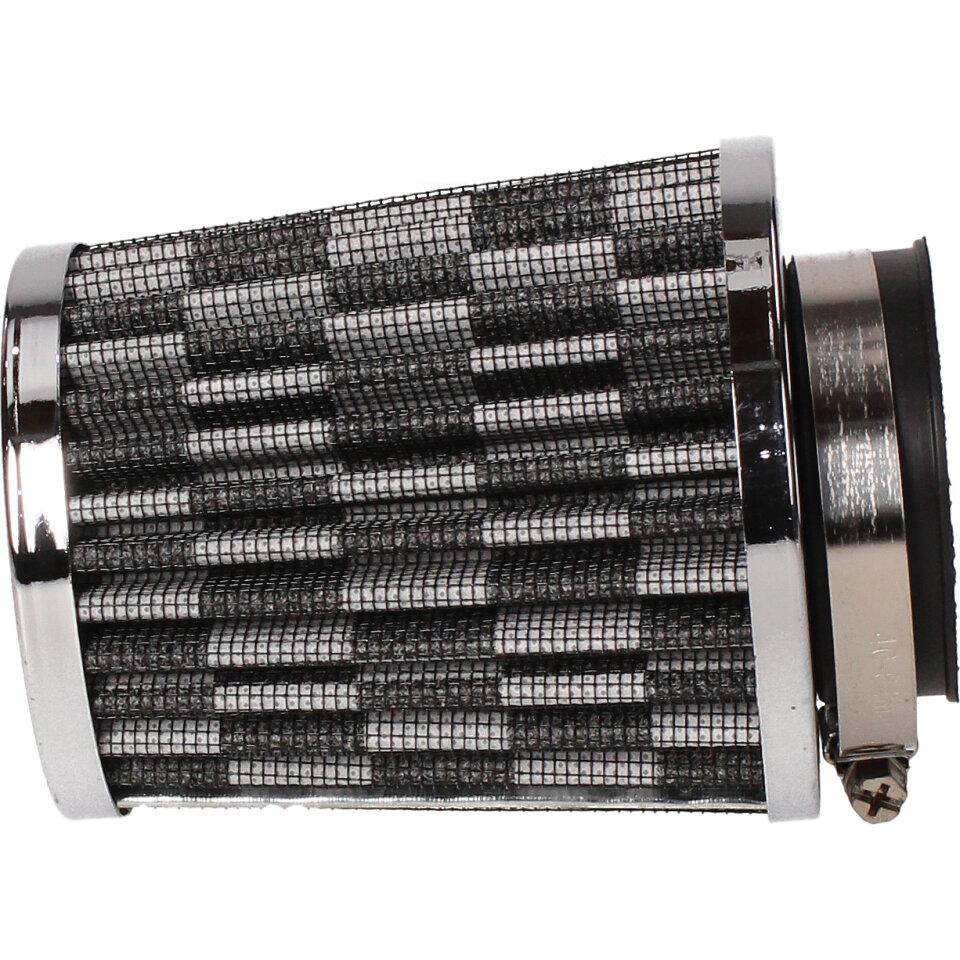 Tuningový vzduchový filtr s přírubou o průměru 50mm pro montáž přímo na sání (karburátor). Jedná se o speciální vzduchový filtr s krycí vnější plechovou síťkou a vnitřní pěnovo-textilní filtrační vložkou. Filtry s gumovou přírubou jsou určeny pro univerzální použití na aplikacích (malé motocykly, čtyřkolky, skútry, motokáry, přídavné motory a další), kdy je možná montáž vzduchového filtru přímo na hrdlo sání ( karburátor) při vyloučení air-boxu vzduchového filtru.