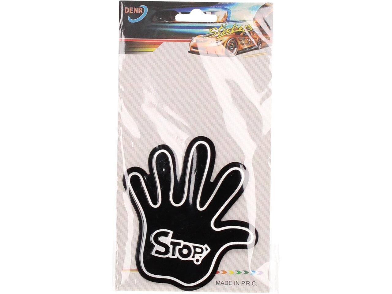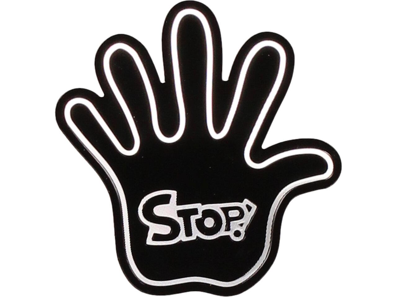 Samolepka černá ruka STOP o rozměrech 9 x 8 cm.