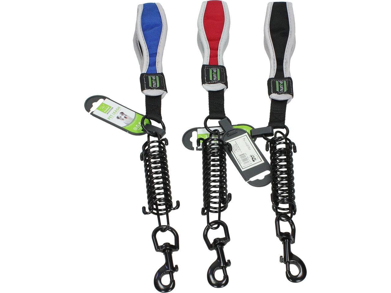 Toto psí vodítko s karabinou a pružinou slouží pro chůzi u nohy, tudíž se už nemusíte bát, že vám pejsek nebo kočička uteče, případně něco sní. Na výběr je ze tří barev a to: modrá, řerná, červená.