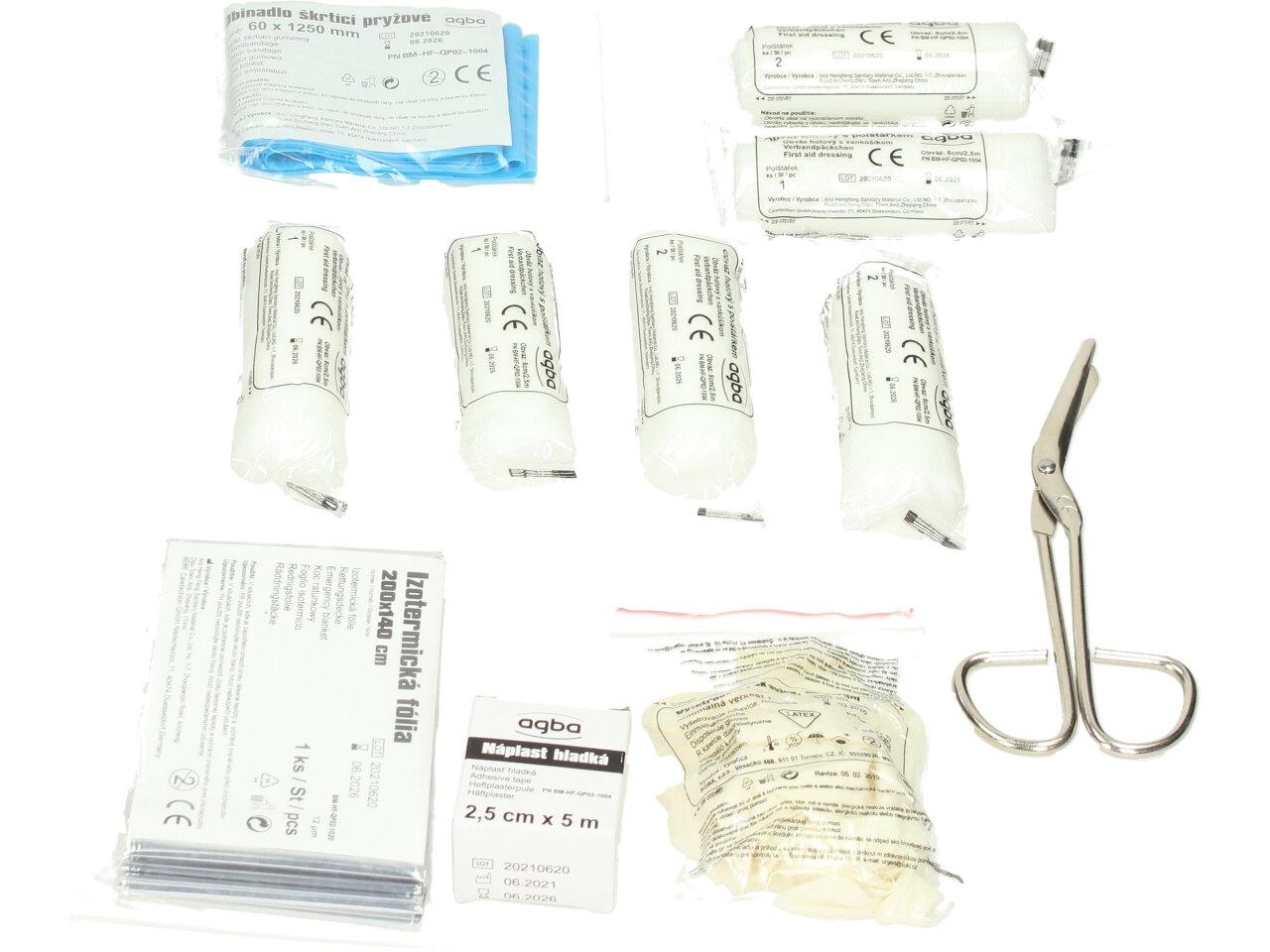 Nezbytná a povinná součást výbavy každého automobilu. Zkontrolujte si obsah a expiraci Vaší autolékárničky - mohou na tom záviset lidské životy! Tato lékárnička plně odpovídá vyhlášce MDČR č.341/2014 Sb., příloze č. 12, část B, bod 11, velikost č. I