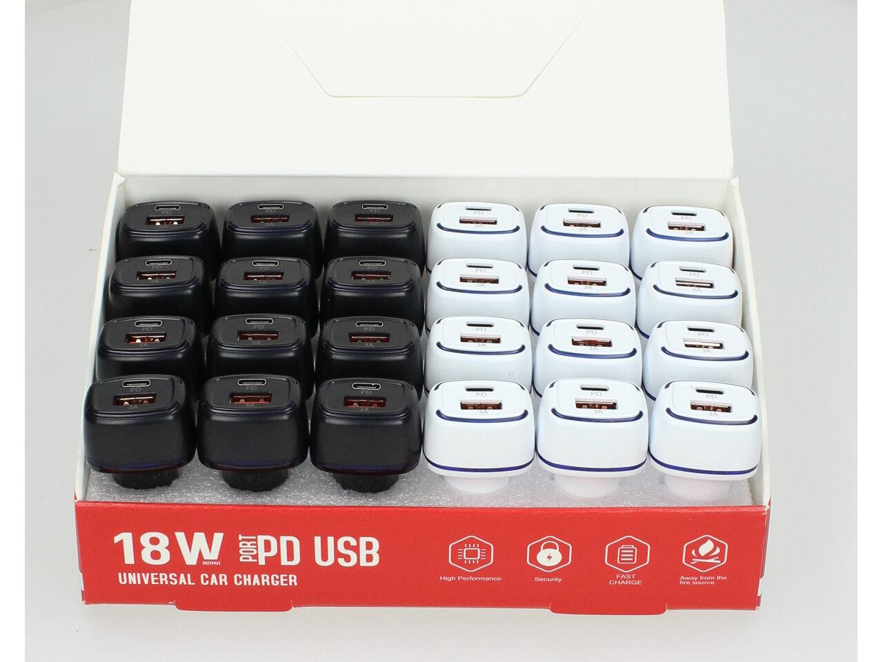 - Módní design je stručný a decentní - Barva: černá, bílá - Materiál: plast + železo - 1. Vstup: 1x USB 3A - 2. Vstup: USB-C - USB: 5V - Vstupní napětí: 12 ~ 24V. USB kolíček nabíječka do auta
