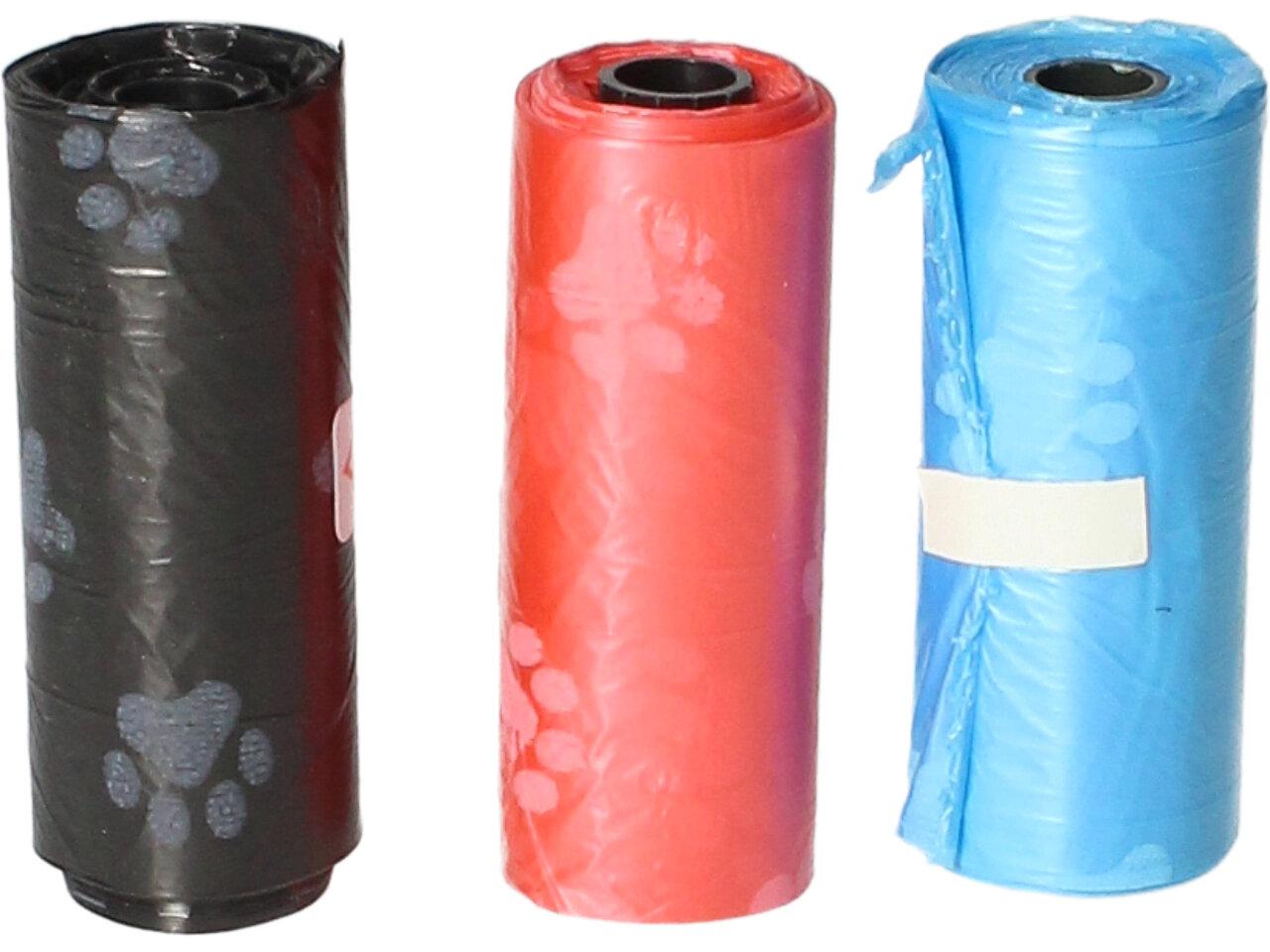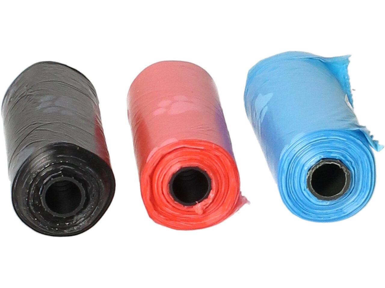 Jste vzorný paníček a po svých čtyřnohých miláčkách uklízíte exkrementy? Tato 12 kusová sada sáčků je pro Vás tím pravým. Připnete si ruličku k vodítku a můžete cestovat. V balení jsou sáčky modré, červené a černé.