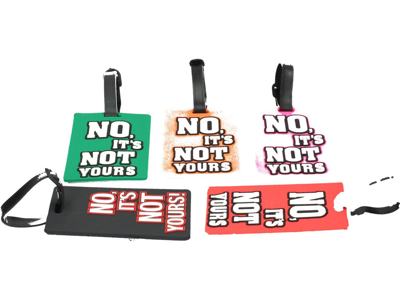 Má to smysl mít v nabídce — jmenovka na Kufr No its not yours Jmenovka na tašku No its not yours lze snadno přichytit na jakoukoliv tašku, batoh, kufr a snadno ji poznáte od ostatních..