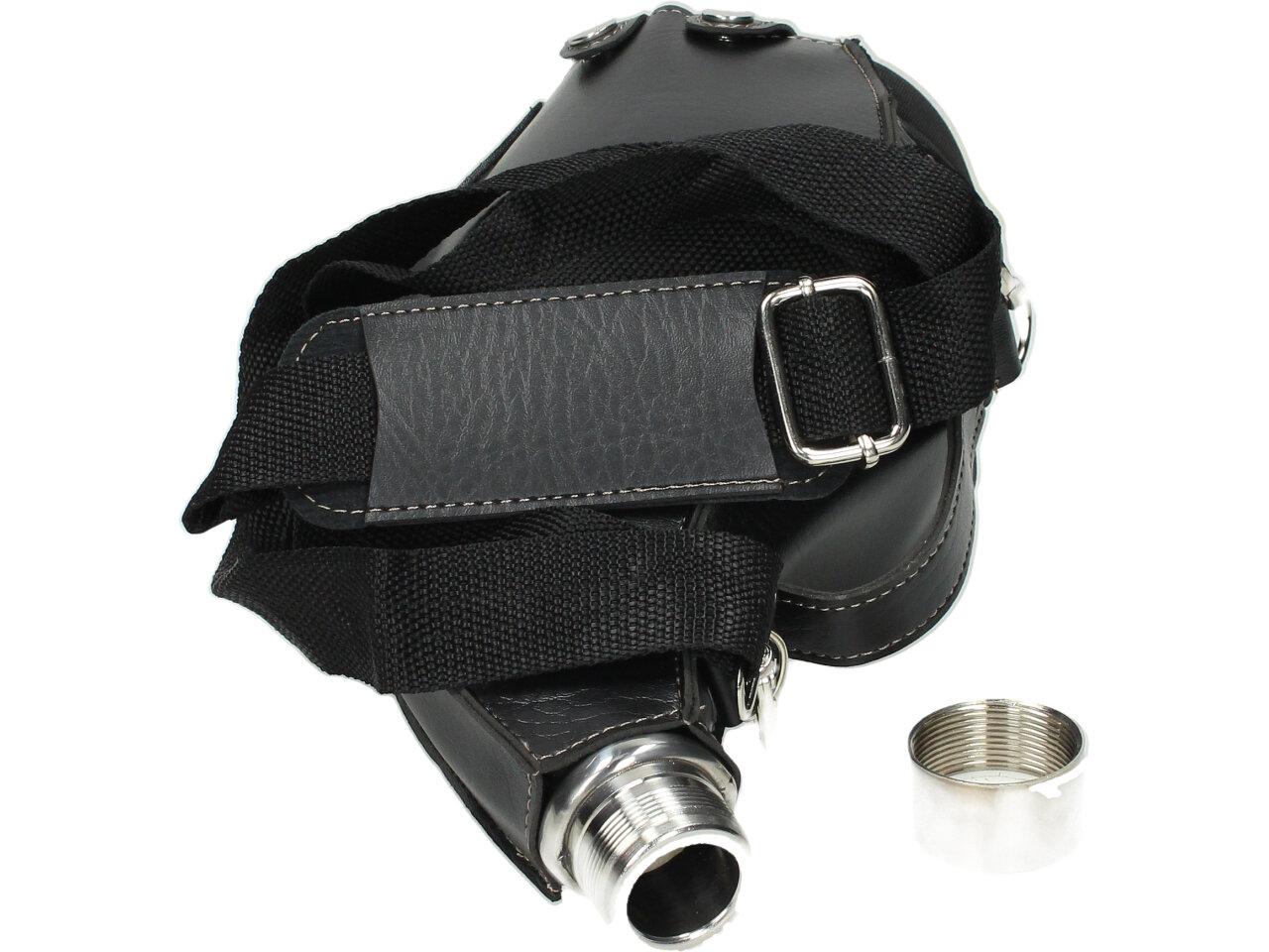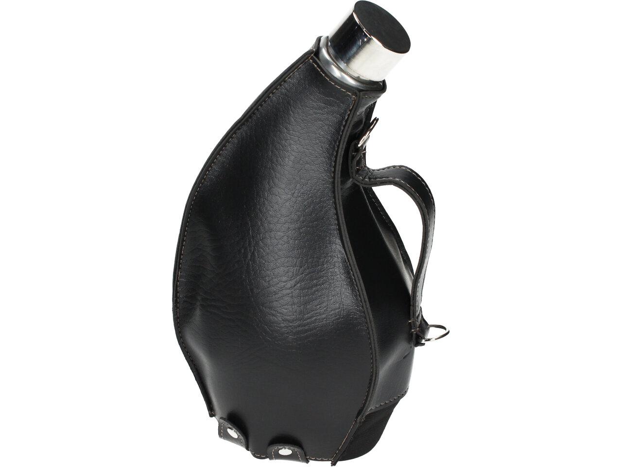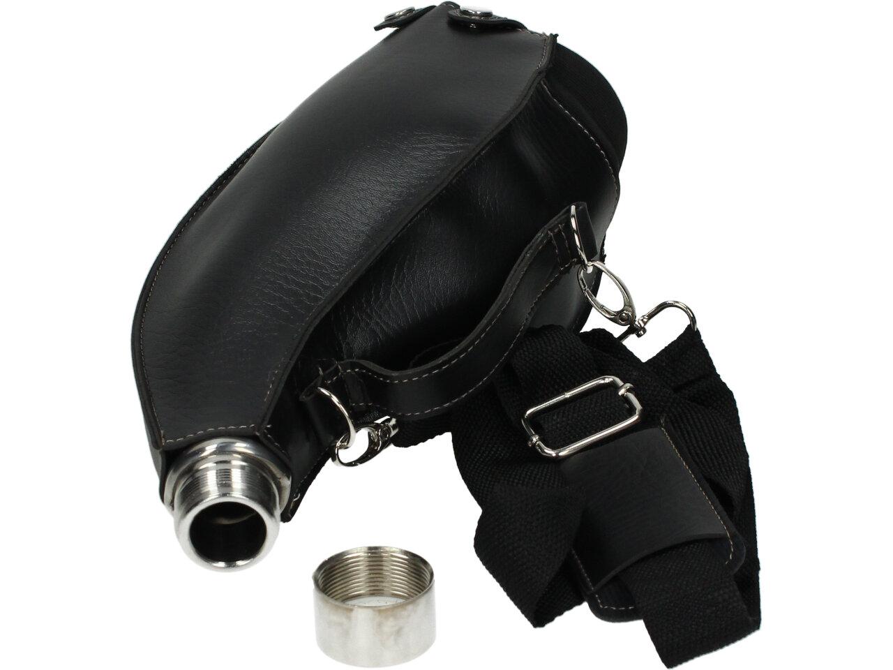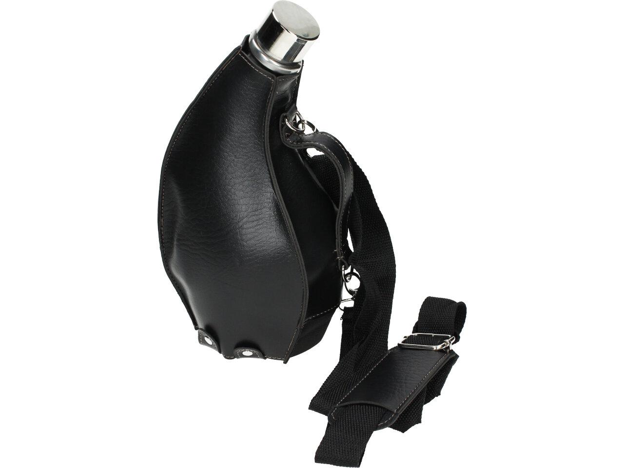 Má to smysl mít v nabídce — placatka na alkohol v koženém černém pouzdře litru Kožená placatka přes rameno je ideální na delší cesty, na tůry, čundry, festivaly i pochody..