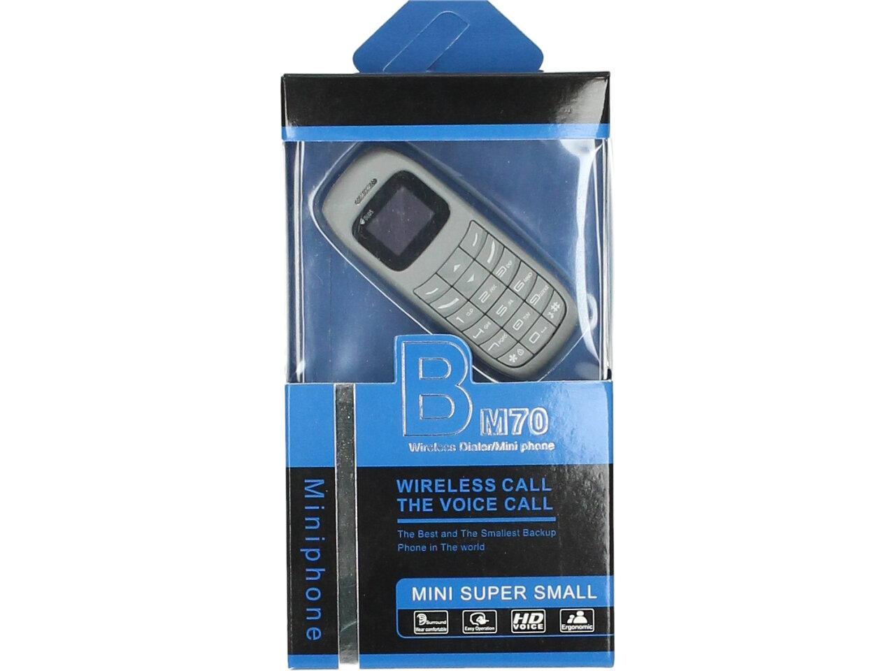 Mini mobilní telefon BM70 dual SIM nám umožní vyřizovat hovory na dvěma tel. čislech zároveň bez přendavání SIM, telefon je extrémně malý(7x3 cm), je tedy vhodný jako nouzový, jelikož se vejde na neobvyklá místa např. do boty, obalu od brýlí,peněženky.. Díky nenáročnosti a jednoduchosti systému nabízí velmi velkou výdrž baterie. Součástí balení je i microUSB kabel-nabíječka. Dodáváme ve třech různých barvách: tmavě modrá, šedá, černá
