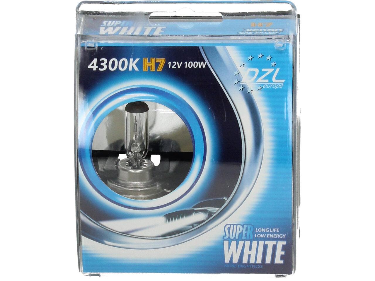 Je to užitečné do běžného provozu — super bílé žárovky H7 Velice odolná H7 žárovka s barvou světla 4300K sada kusy do světlometu do auta na jako náhrada za klasickou nevýkonou žárovku H7..