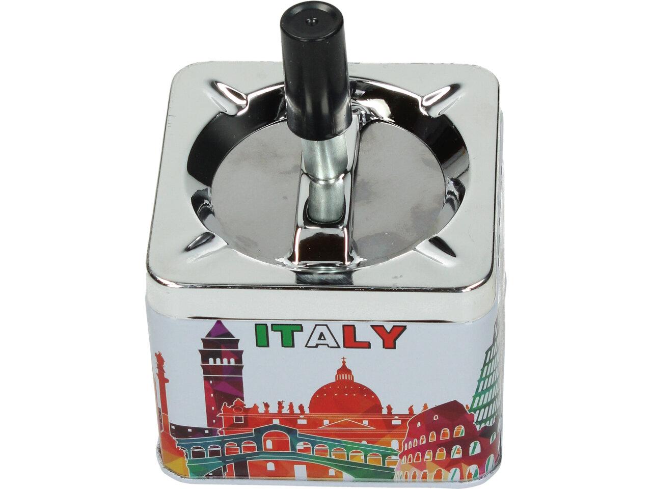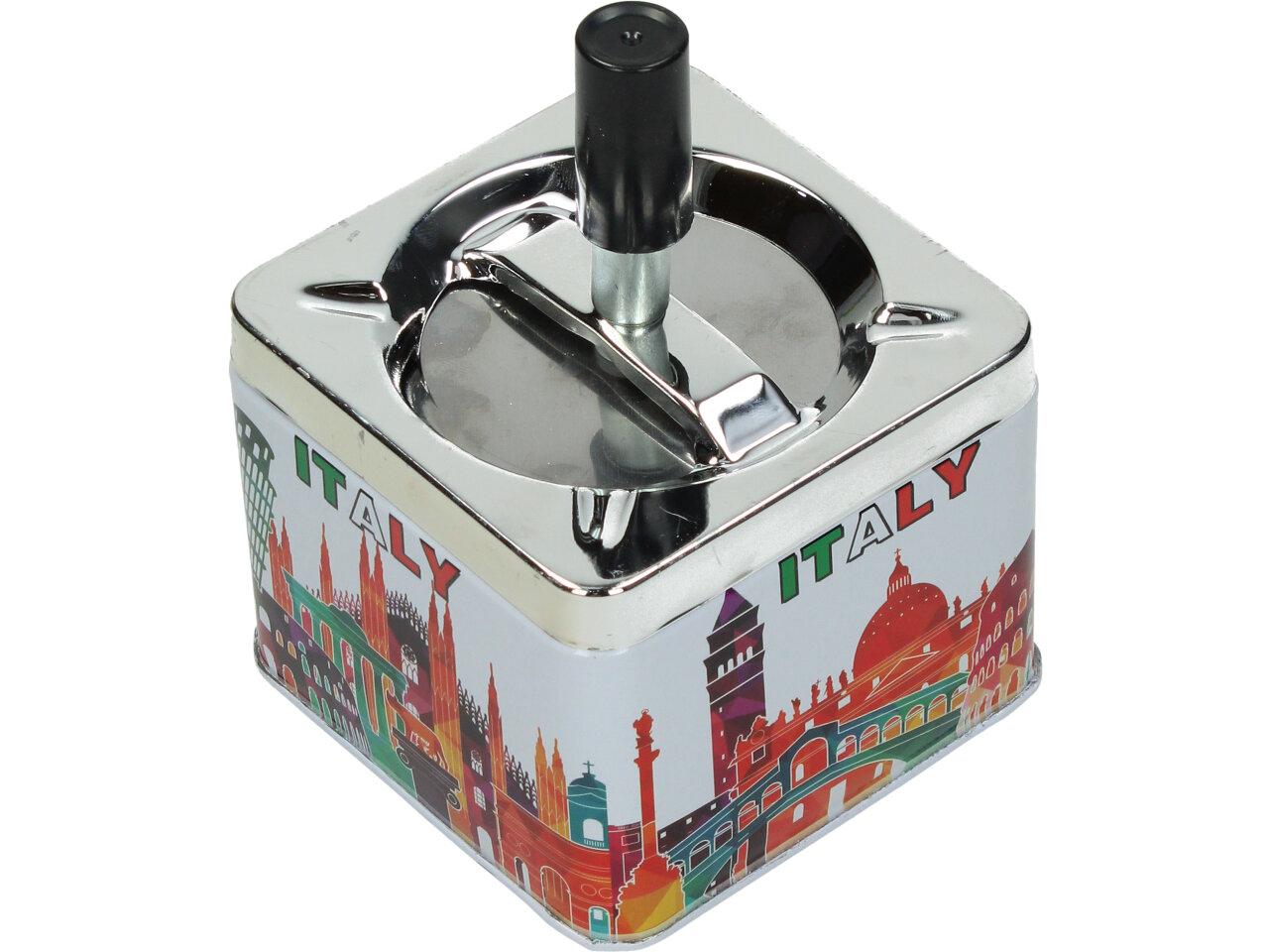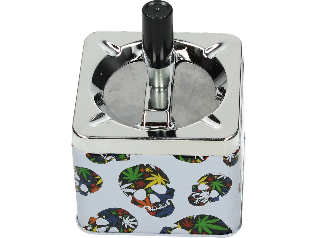 Krásný designový doplňek na stůl, pro kuřáky, nebo kuřácké návštěvy. Kovový popelník s veselým barevným motivem funguje na principu pístu. Po stlačení černé tyčky se popelník otevře a veškerý popel a nedopalky z cigaret se propadnou dovnitř do zásobníku. Po té co tyčku pustíte, popelník se sám zavře a utemní tak odpad z cigaret ve svých útrobách. Nic tak nikde nepadá, vítr nic nerozfouká a není nic cítit.