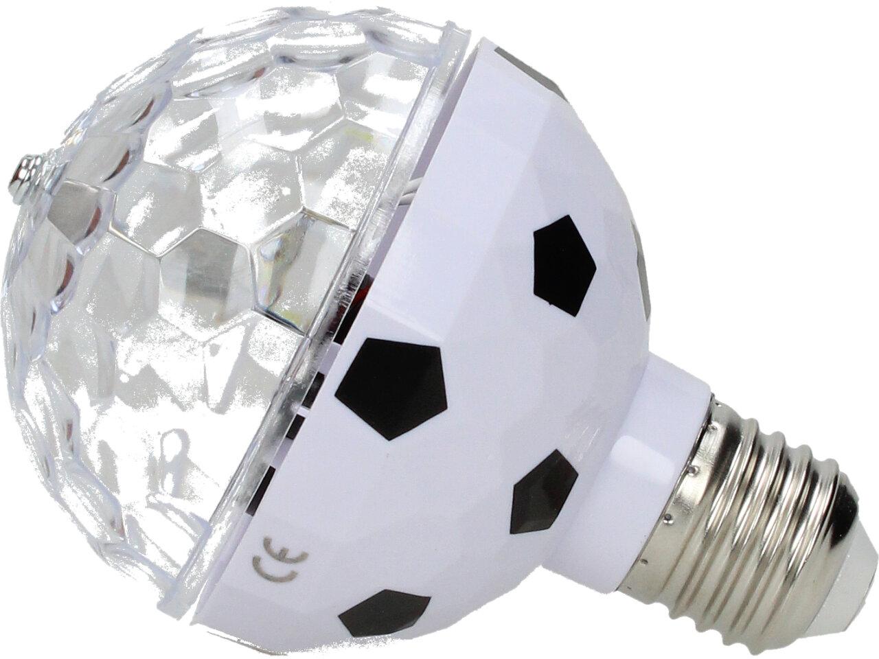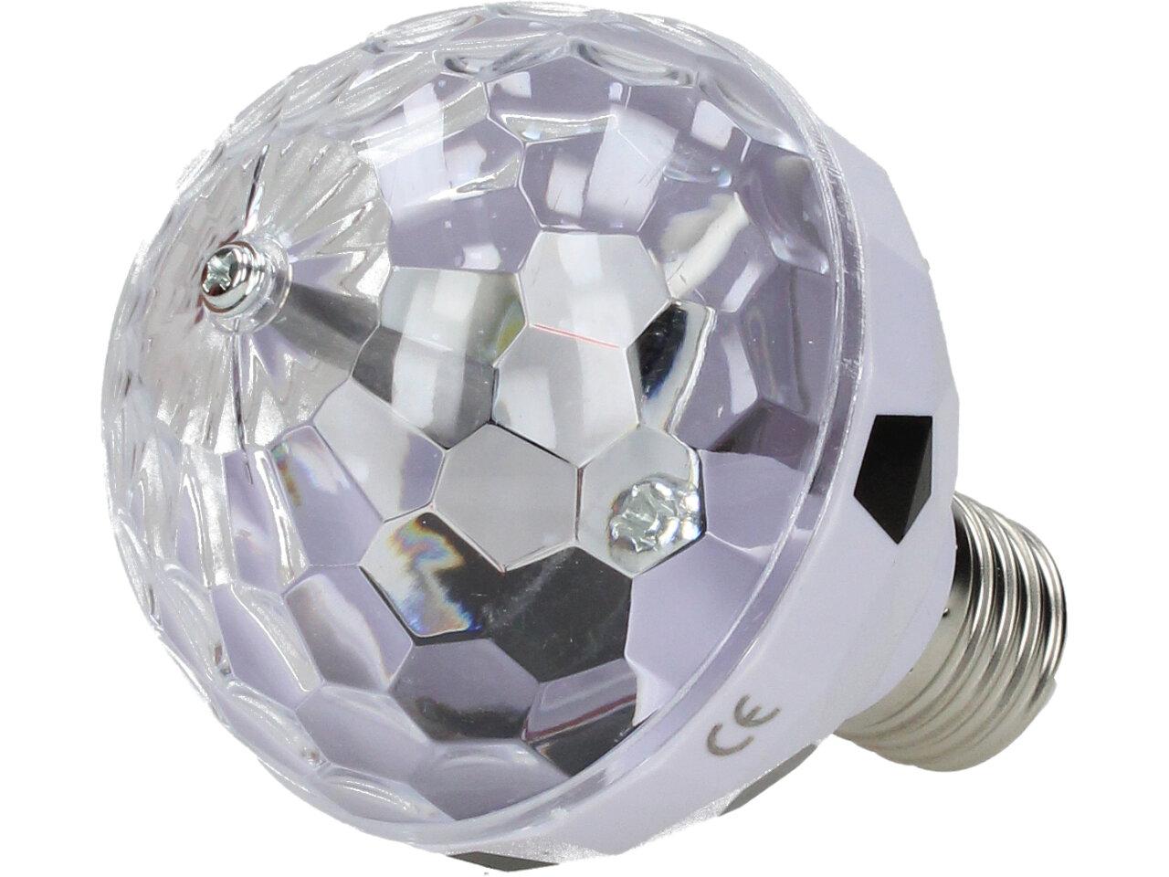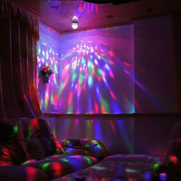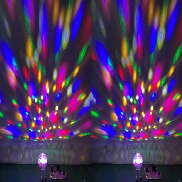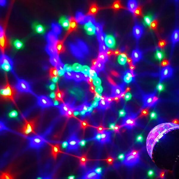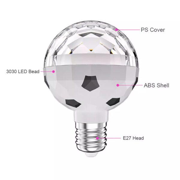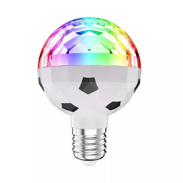 Žárovka vytváří Stroboskopický efekt, tato RGB plně barevná LED otočná žárovka je dobrým způsobem, jak zlepšit a rozjet každou párty. Žárovka zajišťuje automatickou změnu barvy a rotaci červené, modré a zelené. Vytváří stroboskopický efekt disko koule.