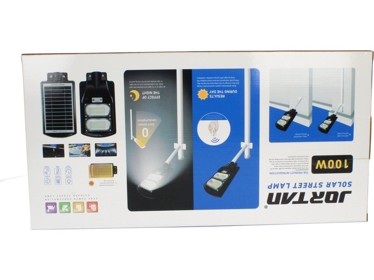 Solární pouliční světlo Jortan 100W + dálkové ovládání specifikace: