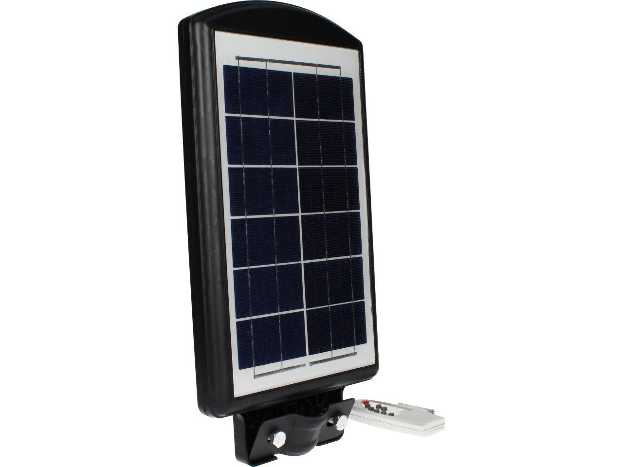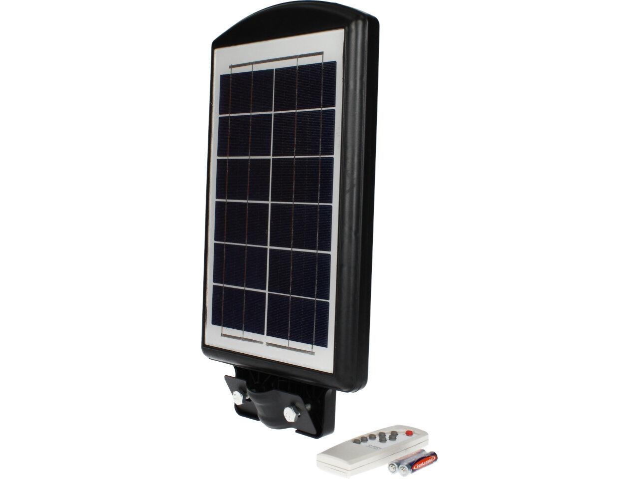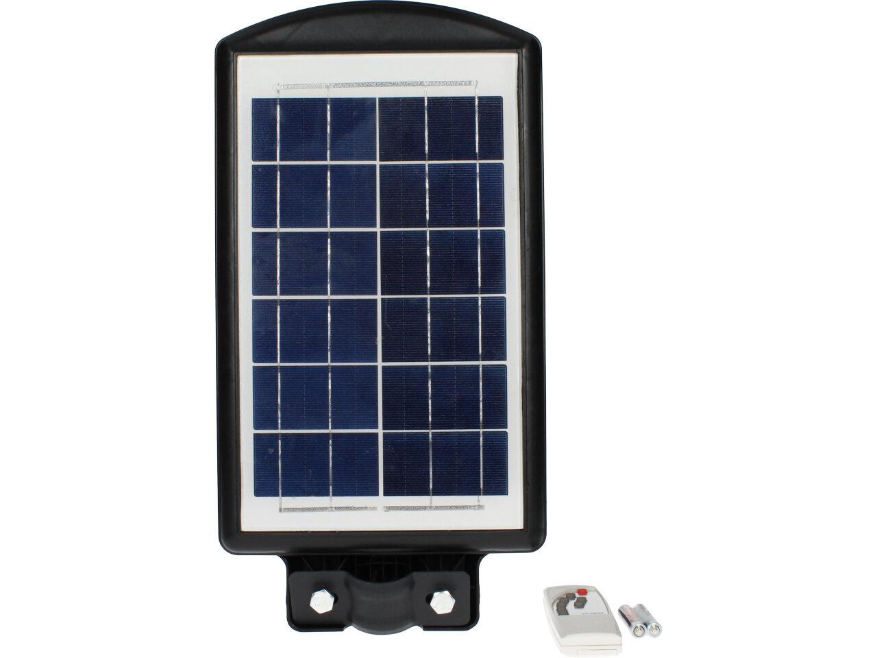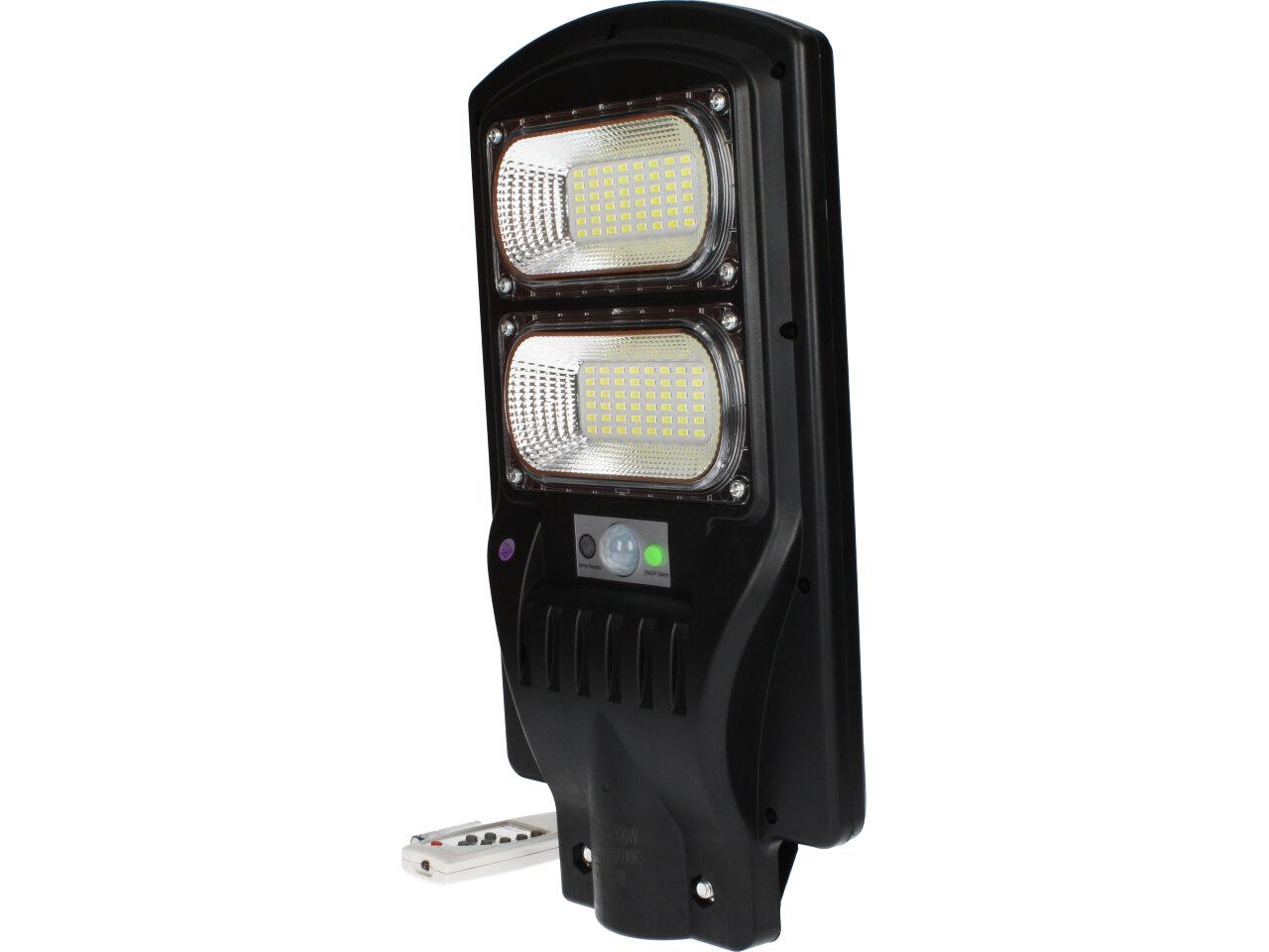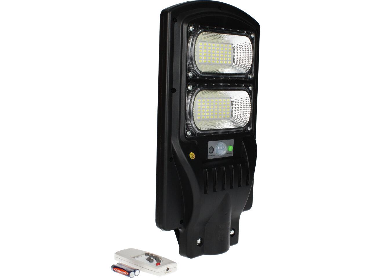 Solární pouliční lampa se senzorem pohybu je vhodná pro místa bez přístupu k elektřině. Ideální pro osvětlení zahrad, vjezdů garáží, altánů, ulic, chodníků. Detekční úhel: 120°. Lampa se po setmění nebo detekci pohybu automaticky zapne. Maximální výdrž baterie je 8 - 10 hodin. Lze ovládat pomocí dálkového ovladače ve vzdálenosti až 5m od reflektoru. Maximální detekční vzdálenost: 8 m. Baterie do dálkového ovládání: 2 x AAA (jsou součástí).